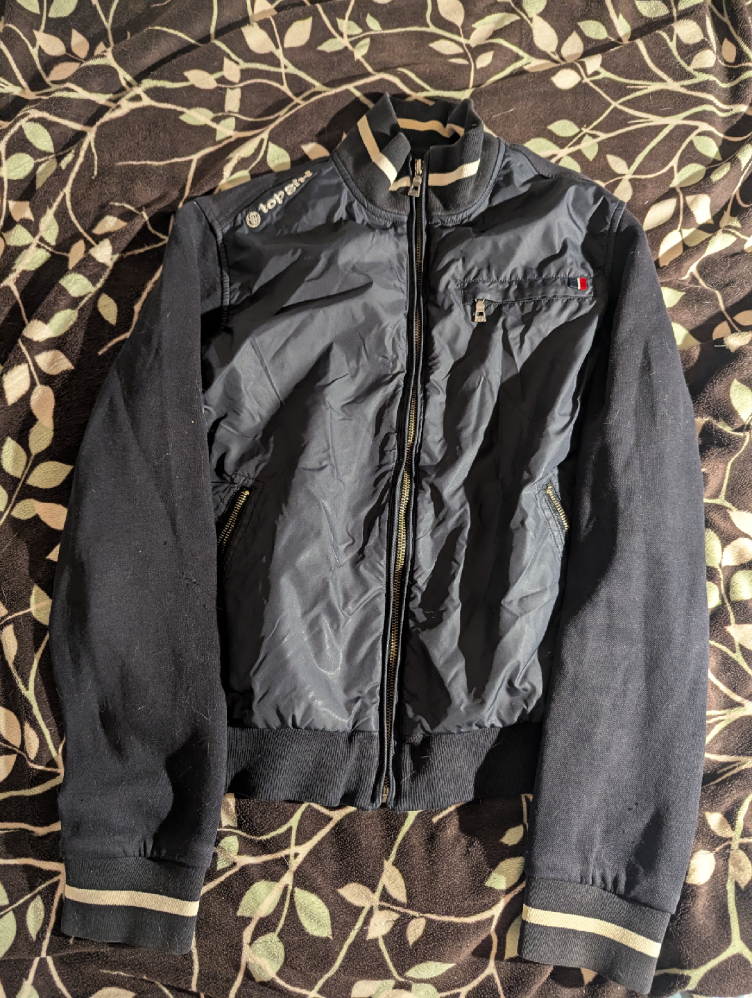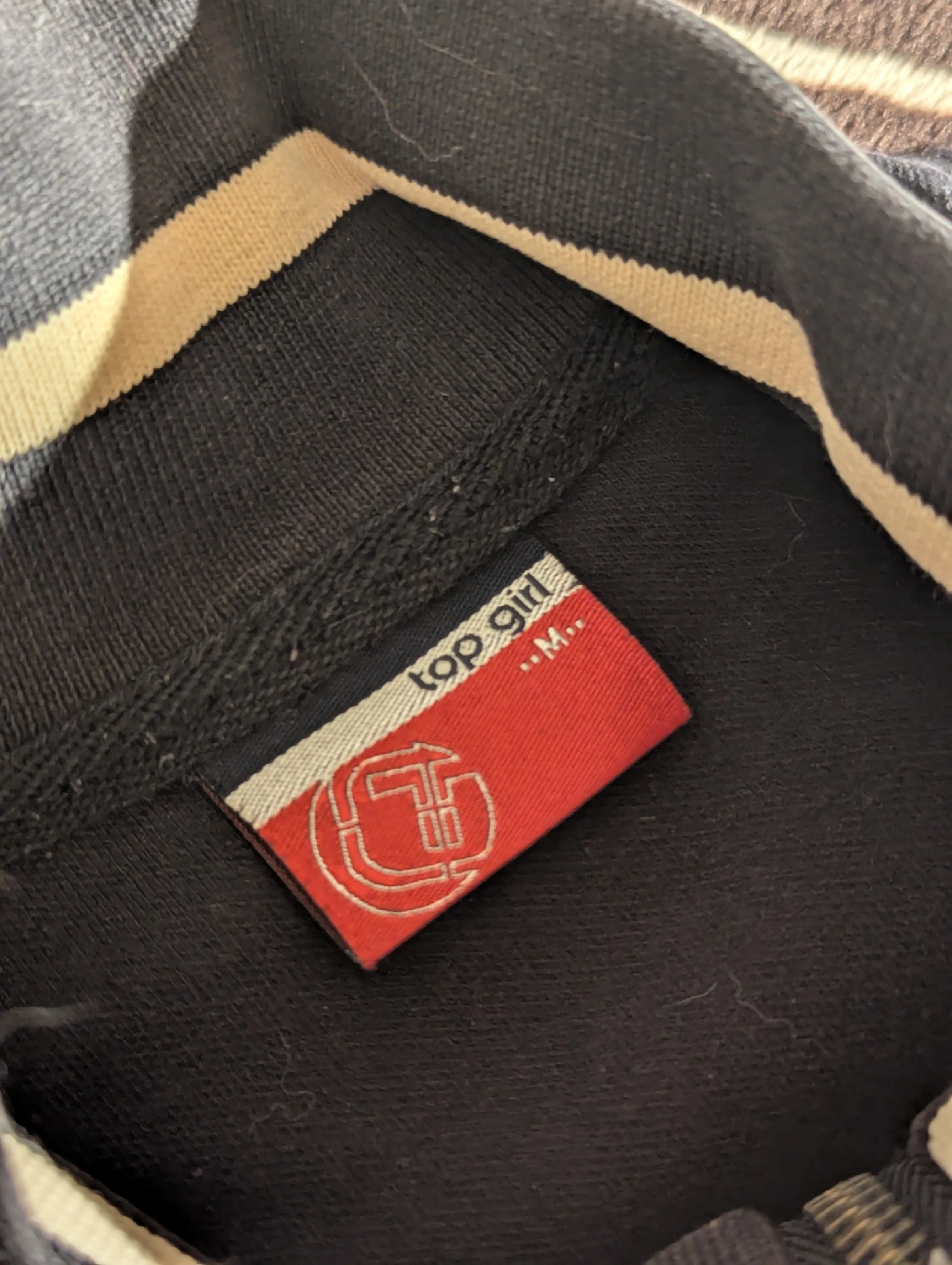 Here's a Top Girl black jacket in size M (fits more like S) It's made of 100% cotton and has a stylish design. Perfect for layering or wearing on its own