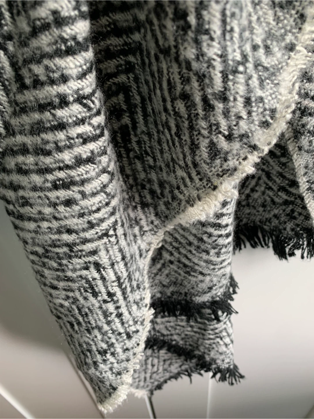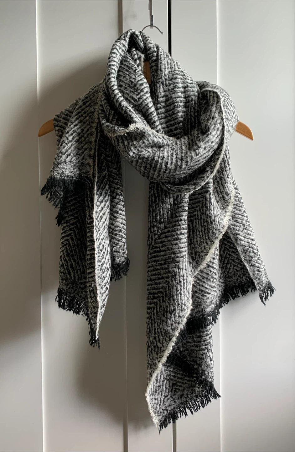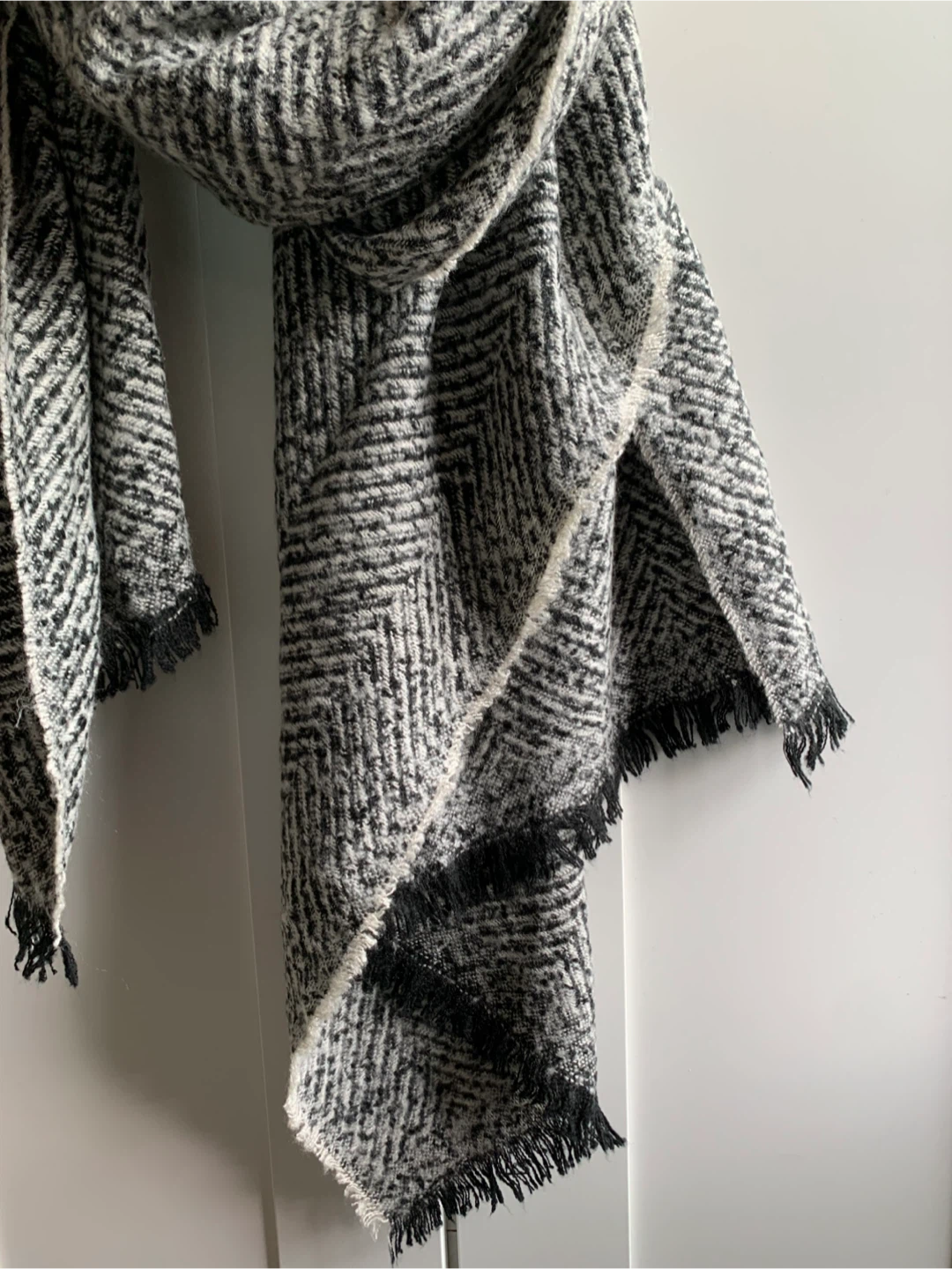 •Very soft cozy black and white herringbone patterned scarf!