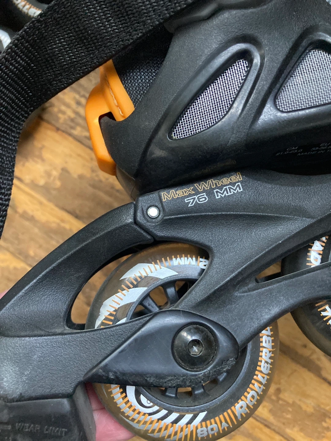 Selling a pair of Rollerblade inline skates for youth! They are adjustable from size 2 to 5 US. The skates feature a Max Wheel 76 MM and SG3 bearings. Comes with a Transpack carrying bag