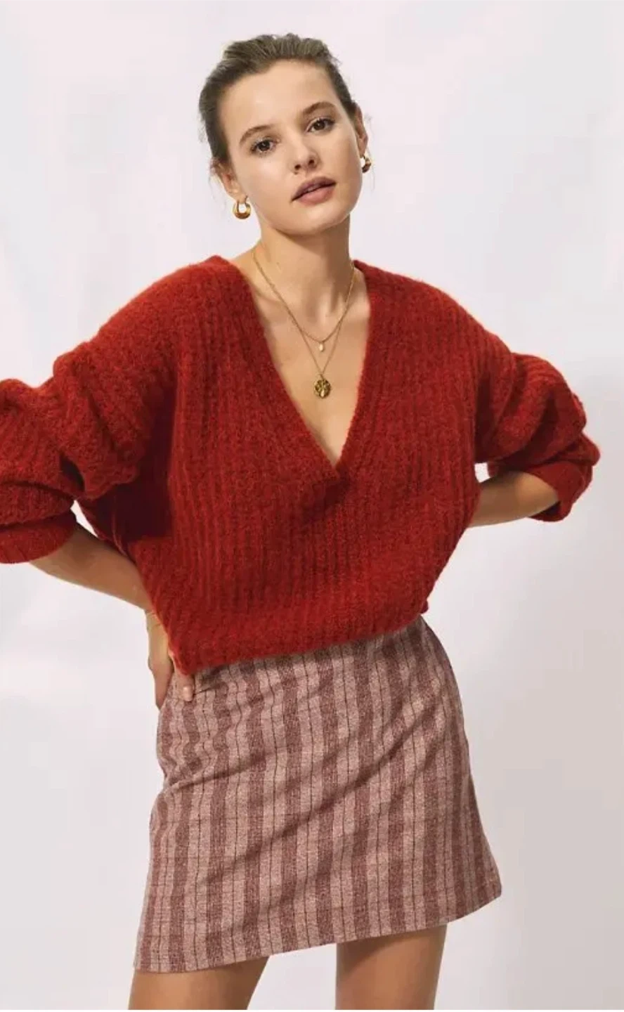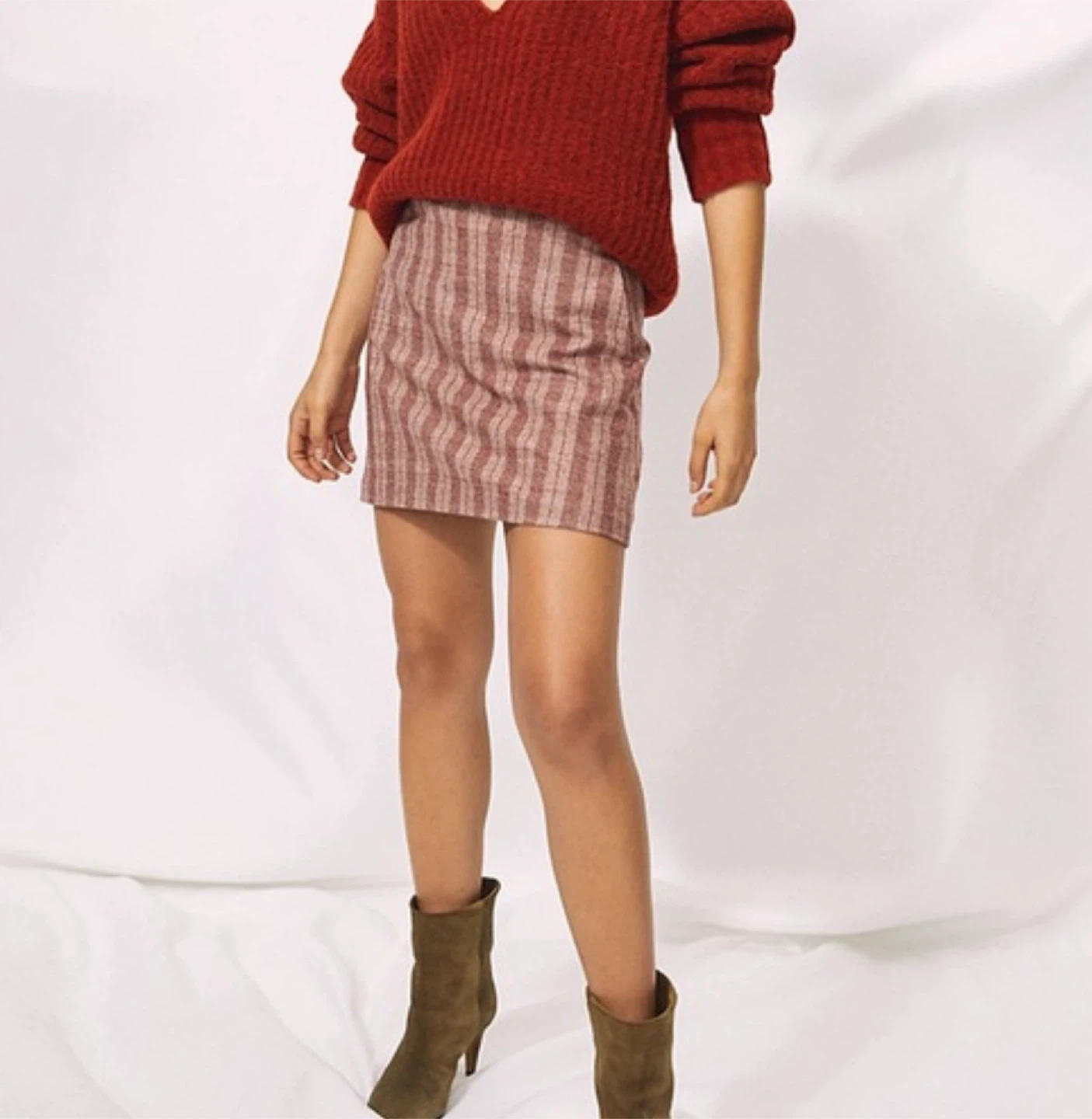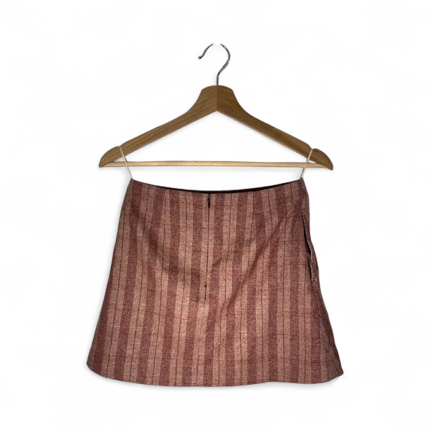 Selling a cute Aritzia Wilfred Free mini skirt. It's a size 2 and features a brown and burgundy striped pattern. Perfect for adding a touch of style to your wardrobe!