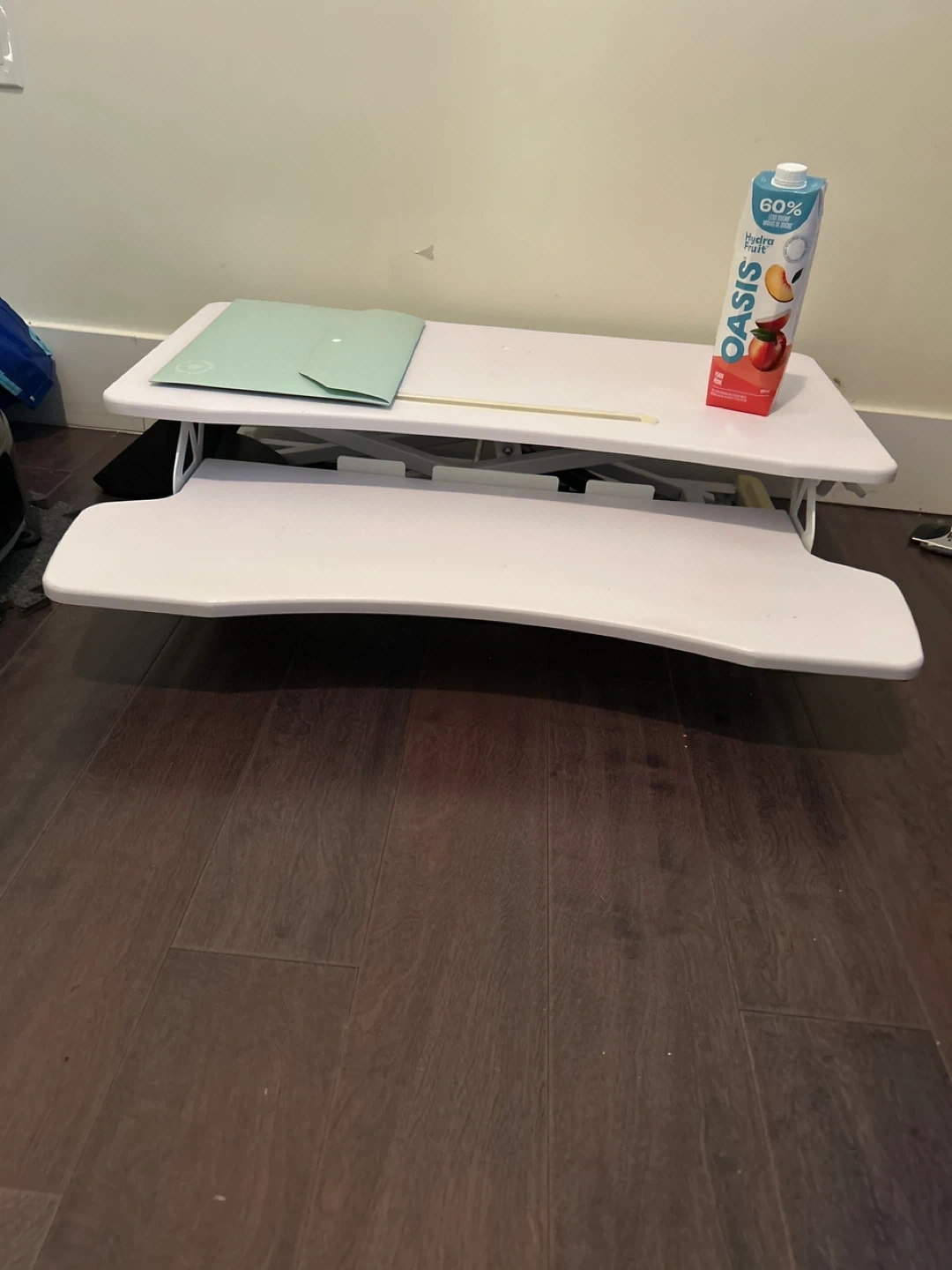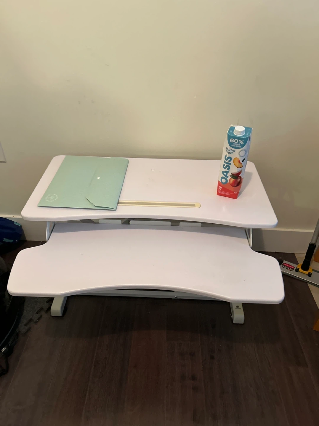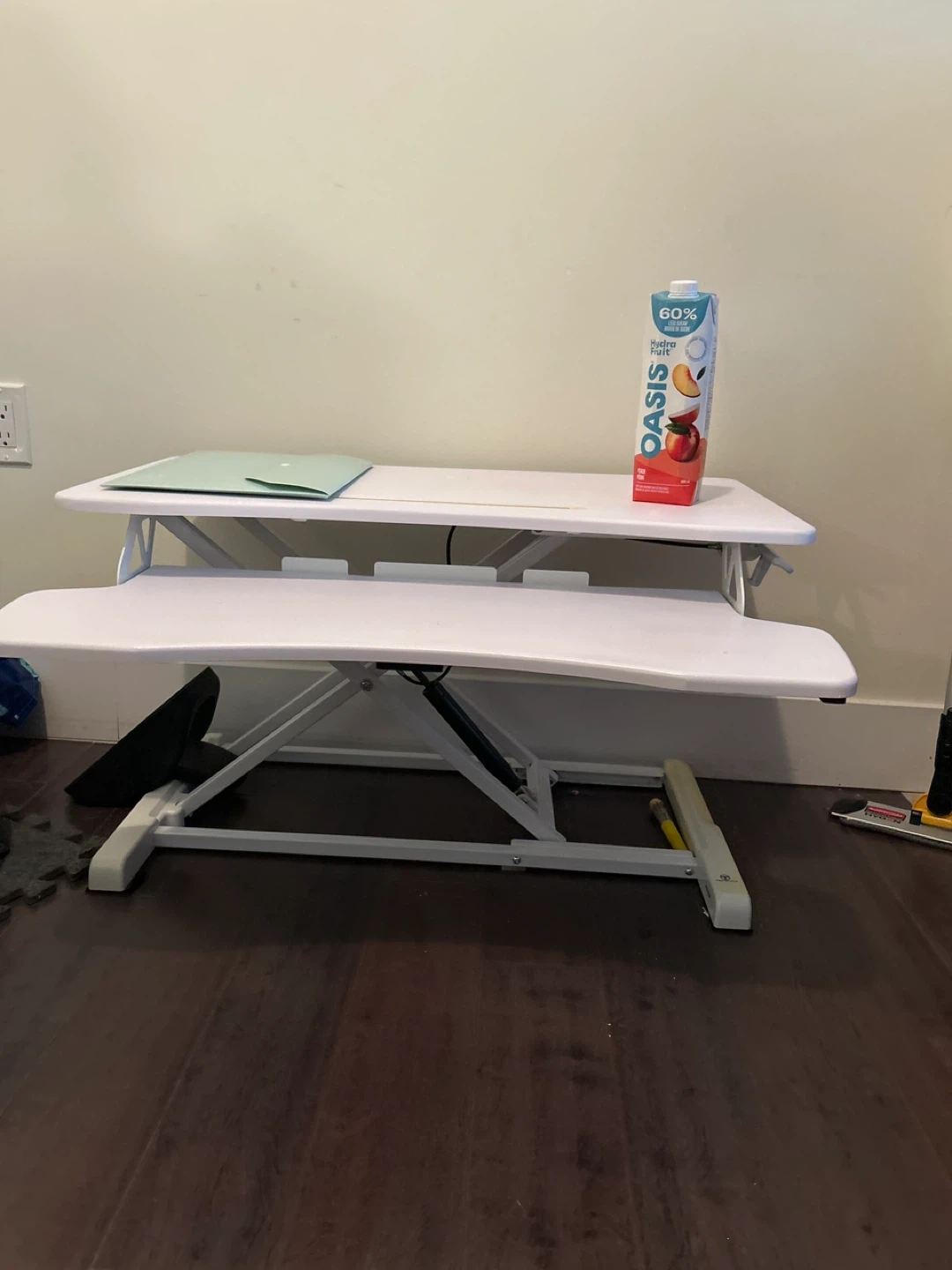 Selling a white adjustable height standing desk! It's in great shape and perfect for working from home. The desk can be adjusted to different heights, so you can sit or stand while you work. It's a great way to improve your posture and stay active throughout the day