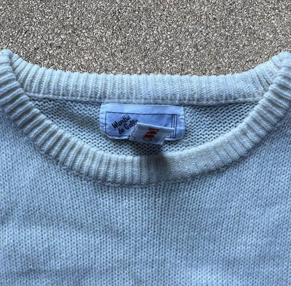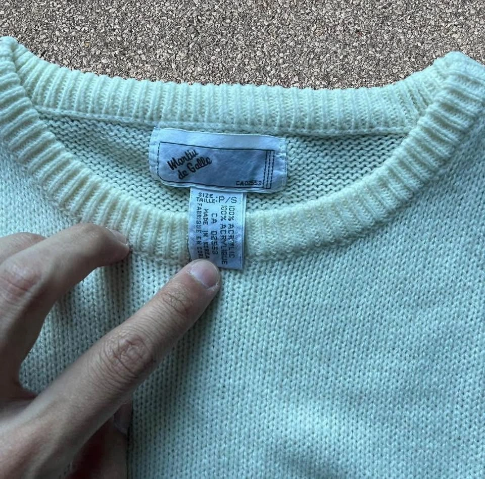 65Size: P/S (Petite/Small) Condition: Excellent vintage condition. No visible flaws. Material: 100% Acrylic Color: Cream / Off-white Style: Crewneck, thick knit. Perfect for layering or as a statement piece. Origin: Made in Korea