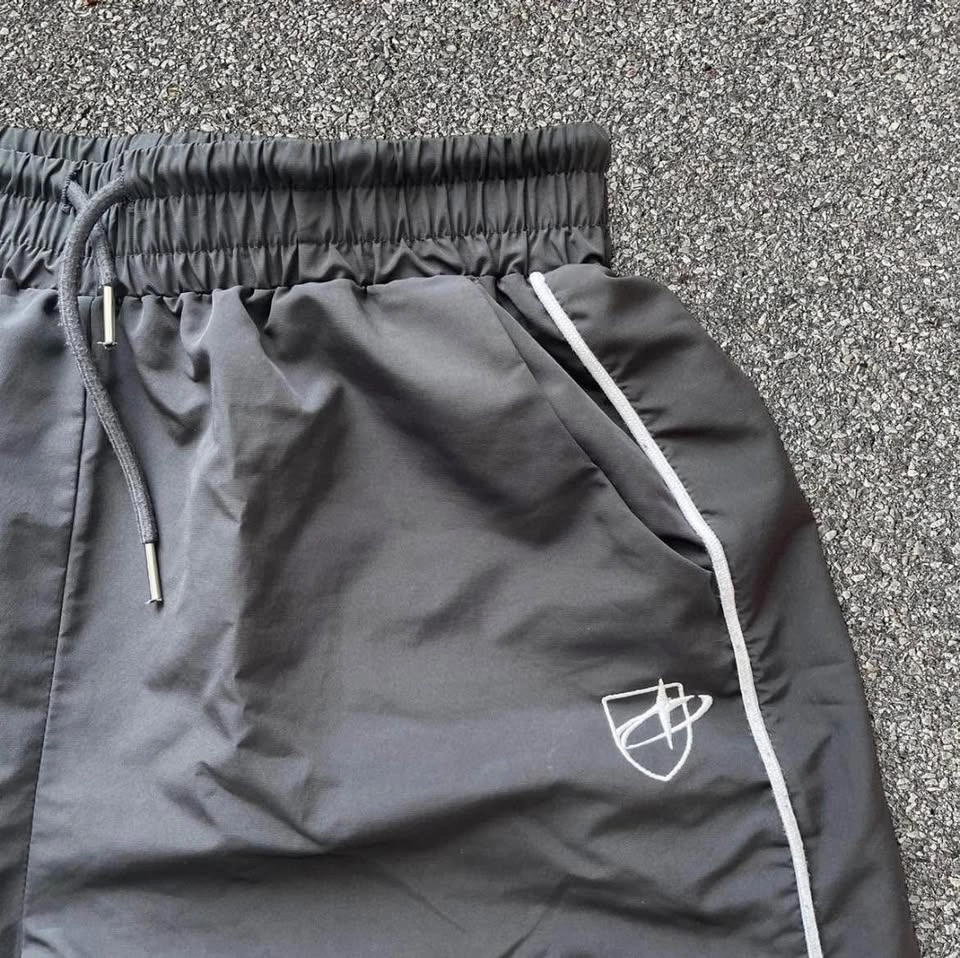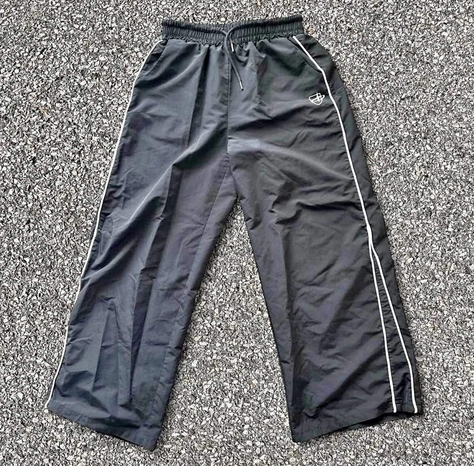 Dazy Wide Leg Track Pants Athleisure Drawstring Black White Trim