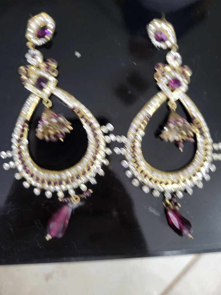 10Beautiful drop earrings featuring gold-tone metal and sparkling purple accents. These earrings are perfect for adding a touch of elegance to any outfit. They are in great condition and ready to be enjoyed!