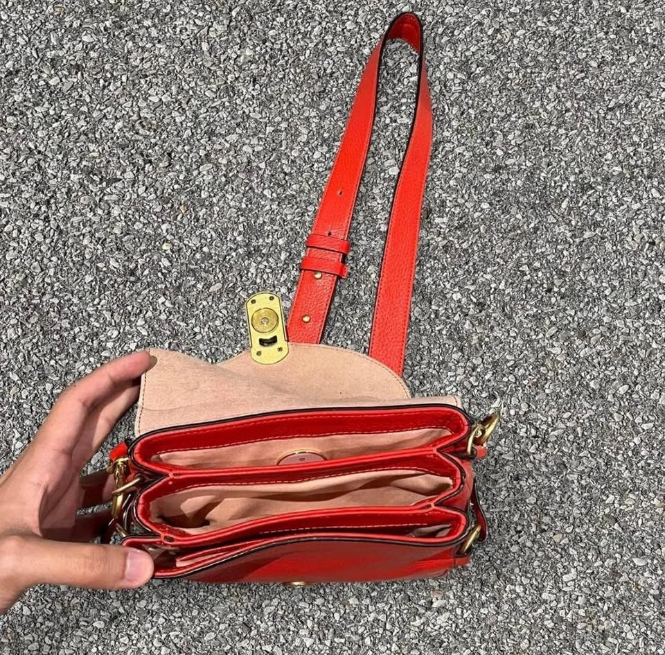 65Coccinelle Zaniah Leather Shoulder Bag. Material composition Exterior: 100% Cowhide Leather; Interior: 60% Polyamide, 40% Polyurethane Closure type Magnetic Closure Lining Textile mobile phone pocket, outside pocket, inner pocket Protective lining magnetic closure Capacity in litres: approx. : 0-10 Series: Zaniah Ladybird shoulder bag in large design. Date shoulder bag: dimensions: width approx. 19 cm. Height: approx. 18 cm. Depth: approx. 6 cm. Weight: approx. 605 g. Colour: Polish Red (Red) 1 adjustable shoulder strap, removable: approx. 102 cm - 117 cm. Material: outer 100% cowhide leather, inner 60% polyamide, 40% polyurethane. Ladybird: shoulder bag with label, dust bag, shoulder strap. Shoulder bag features: shoulder bag is closed with flap and magnetic closure. Shoulder bag has 3 main themes. On the back 1 retractable compartment with button equipped with reinforced base. Features a large main compartment.