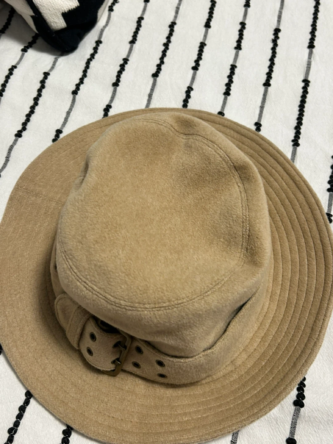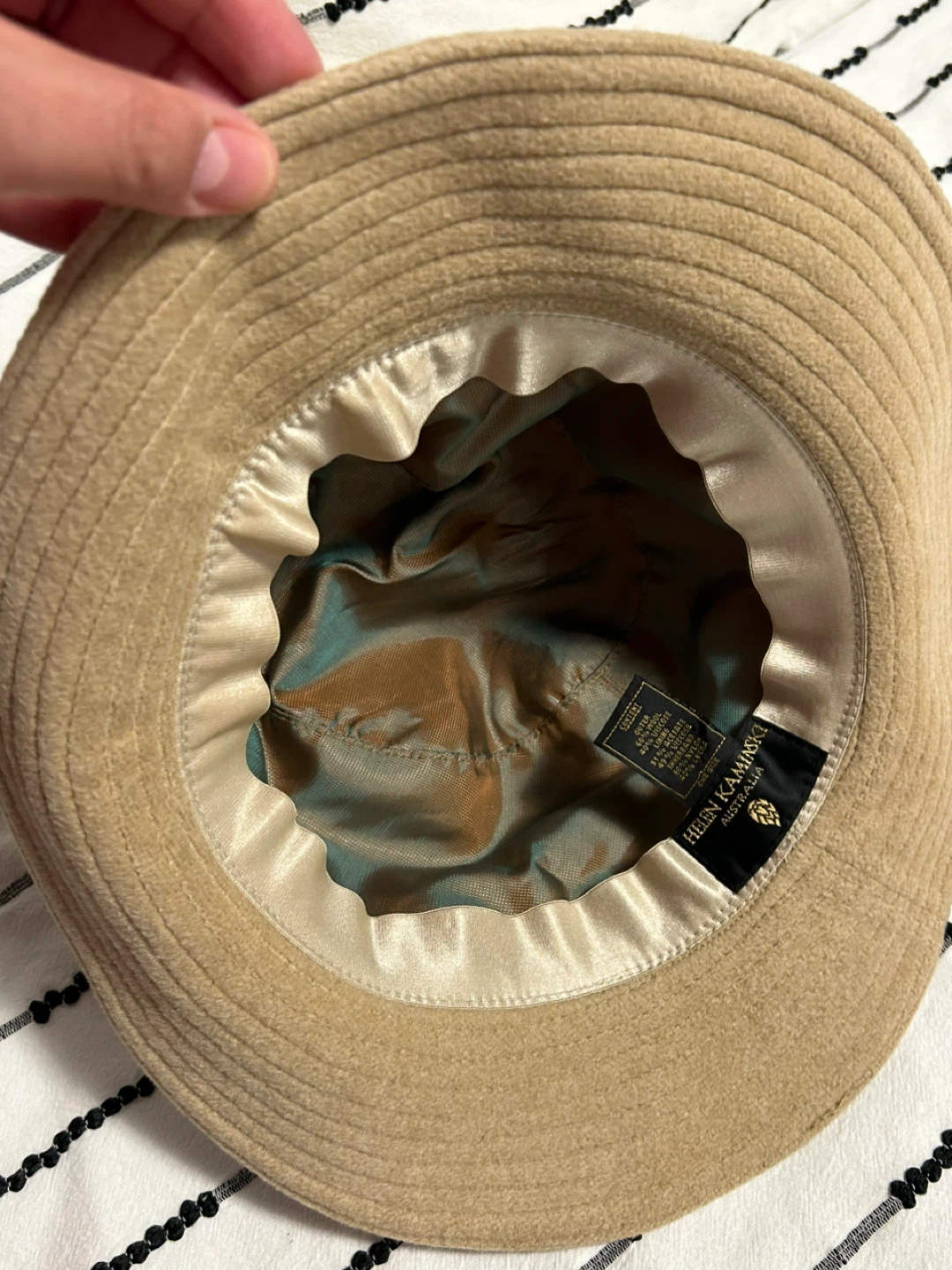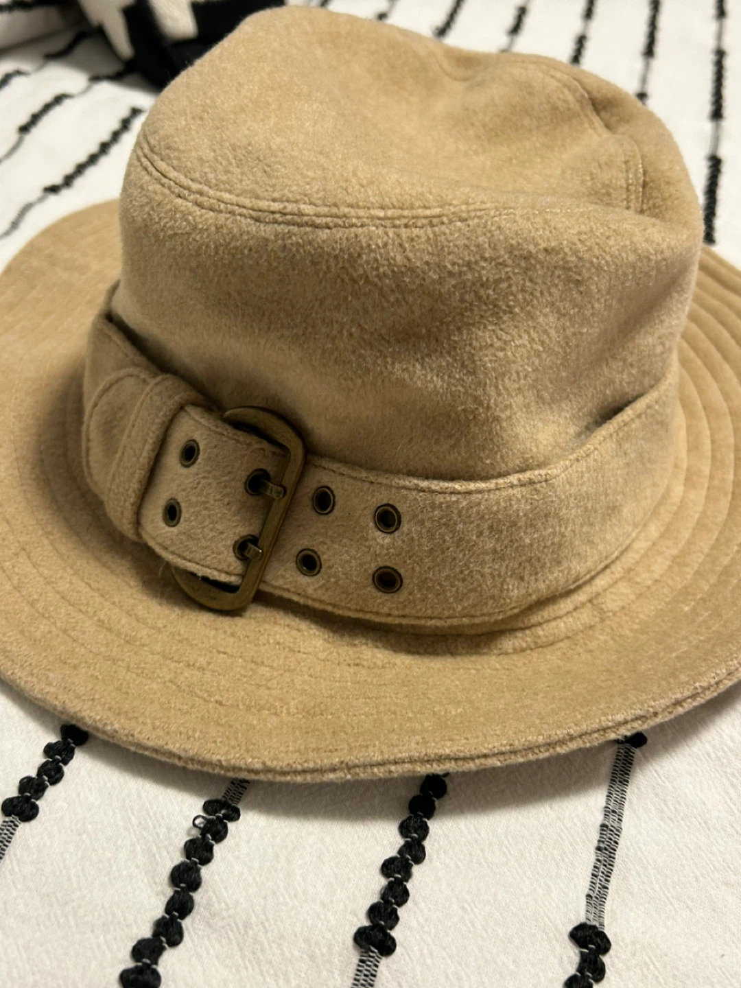 Selling a Helen Kaminski bucket hat in a neutral beige colour. It's a size M and in great condition. The hat features a stylish belt detail and is made of comfortable material. Perfect for adding a touch of elegance to any outfit! open to reasonable offers. I invite you to view my other items; If you are interested in any of them, I will give you a better price.