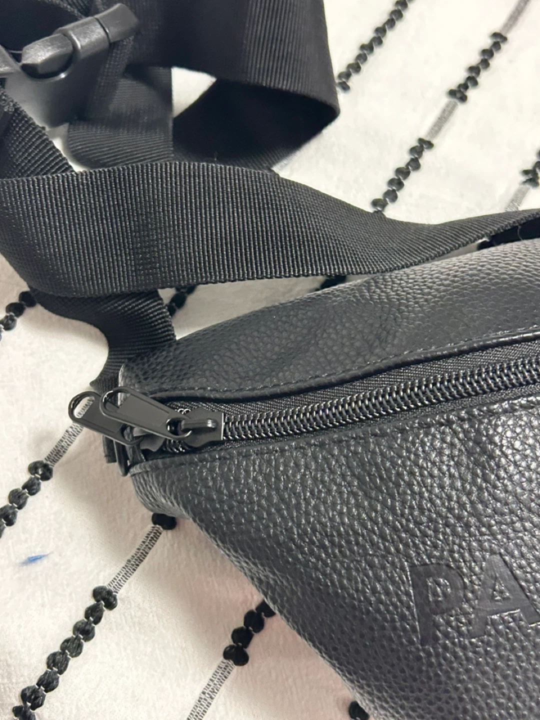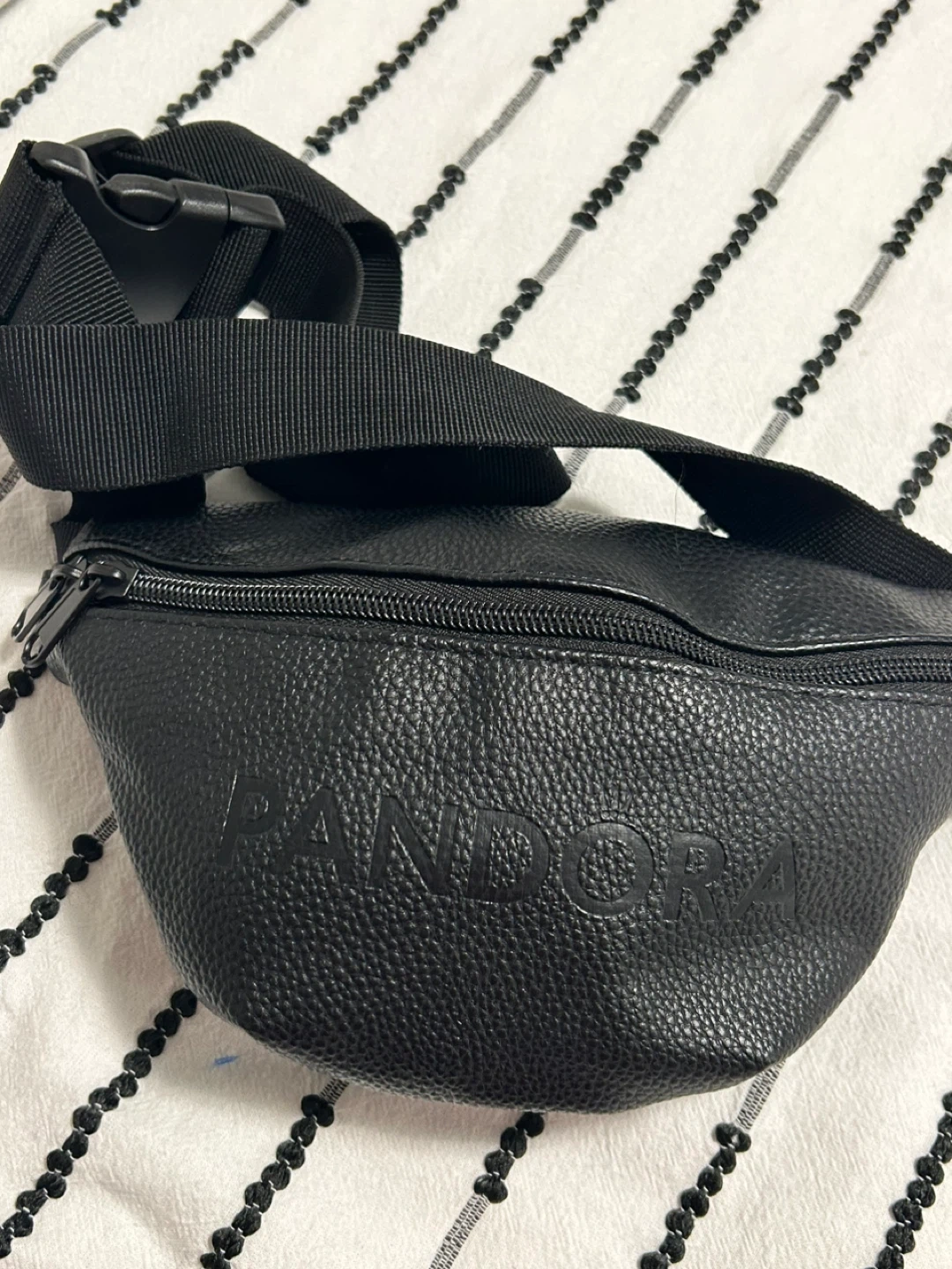 23Selling a black belt bag from Pandora. It's in great condition and ready for a new home! The bag features a zipper closure and an adjustable strap.