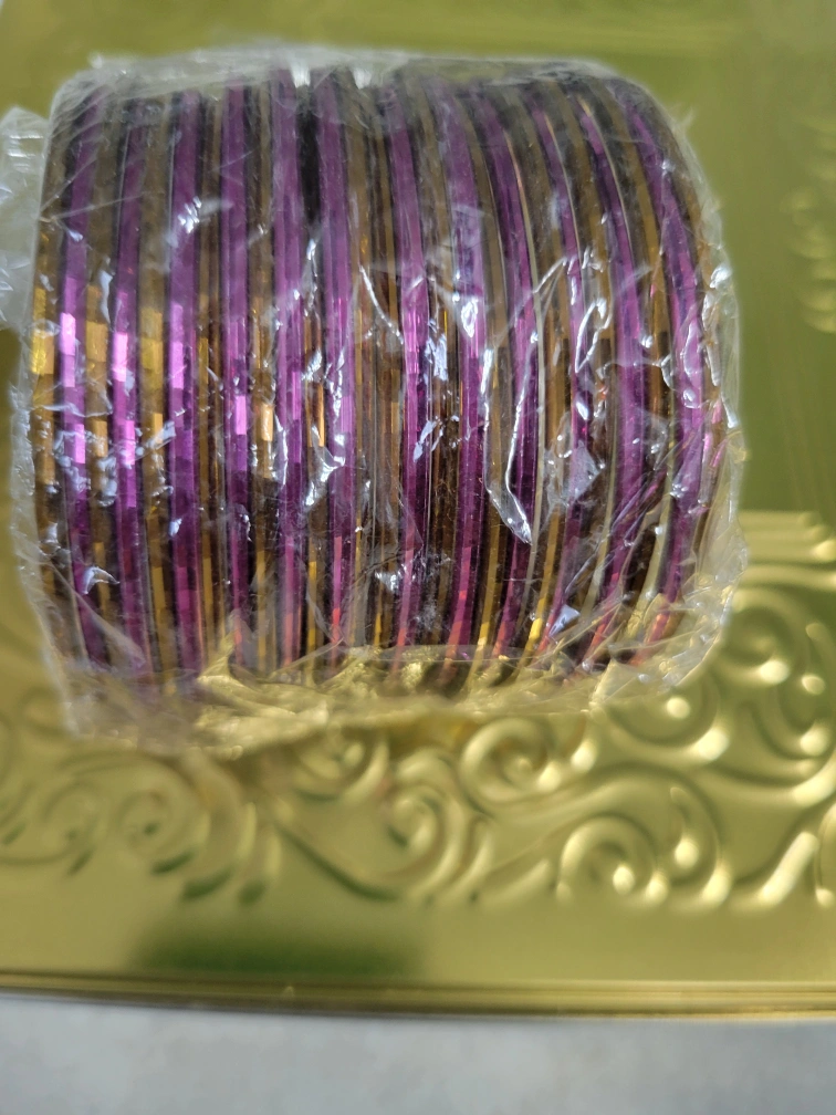 10Here's a set of gold and purple bangles, still sealed in the original packaging! Great for adding a pop of colour to any outfit