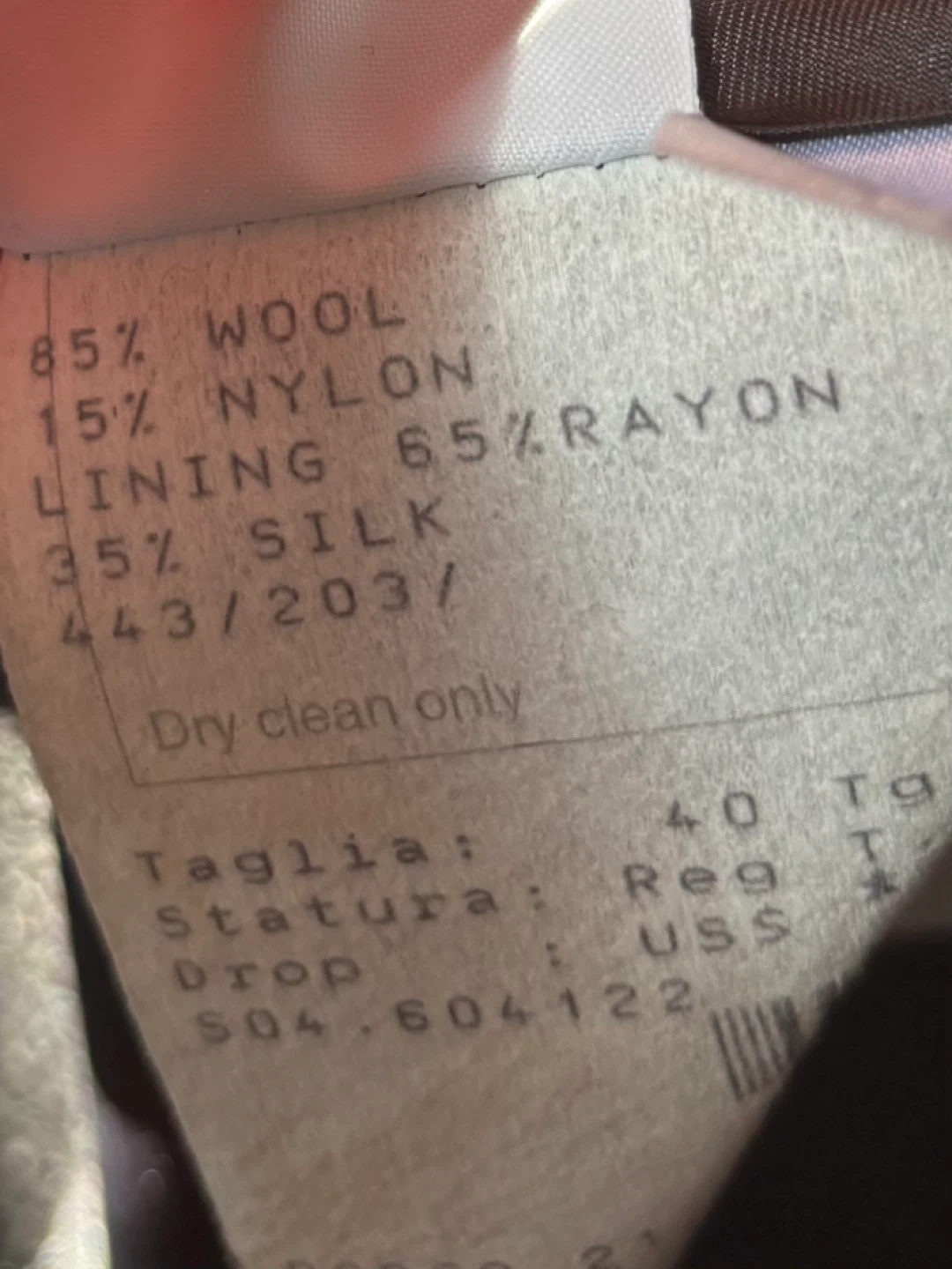 Selling an authentic Giorgio Armani coat in size 40 / women’s small. Model shown wearing jacket is 5’10 Classic black colour, made in Italy, in excellent condition.Material is a blend of 85% wool and 15% nylon, while the lining is 65% rayon and 35% silk.