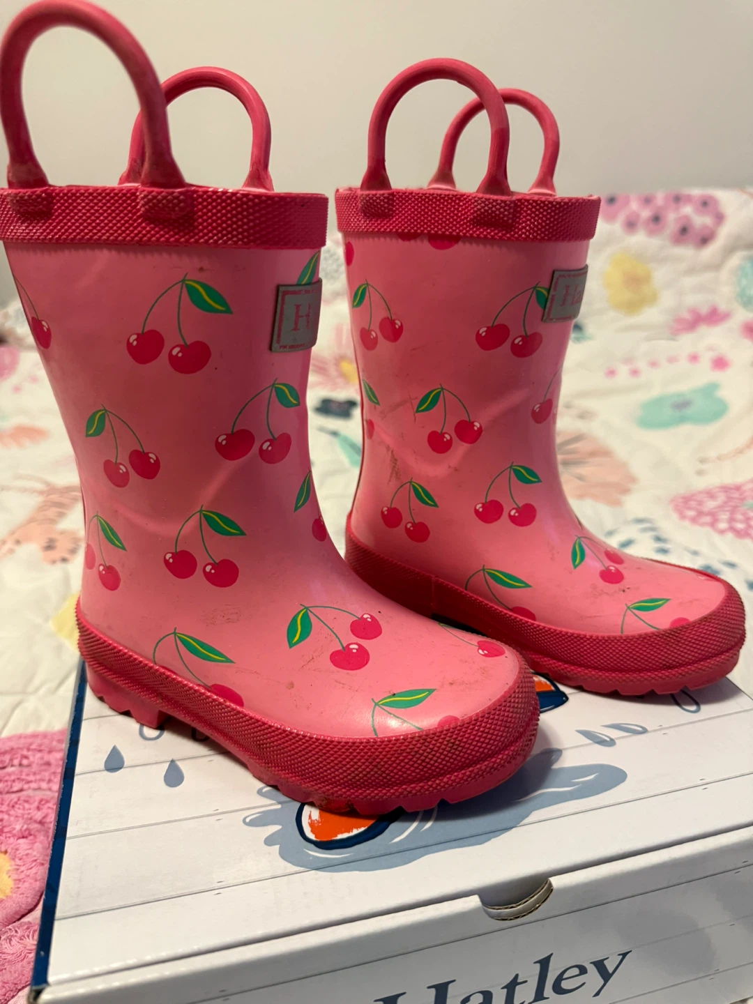 Hatley Classic Kids Rain Boots with a cute cherry design! They're in great condition and ready for some puddle jumping. Size 9 US. Comes with the original box. Check out my other listings.