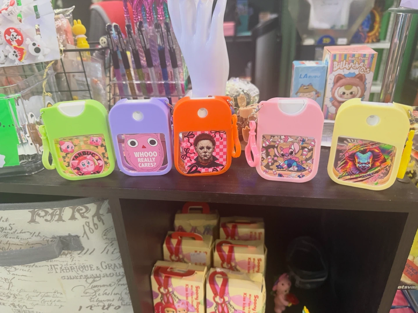 10I have a selection of cute hand sanitizer available! They come in a variety of colours and feature fun characters. Perfect for keeping your hands clean on the go in a stylish way