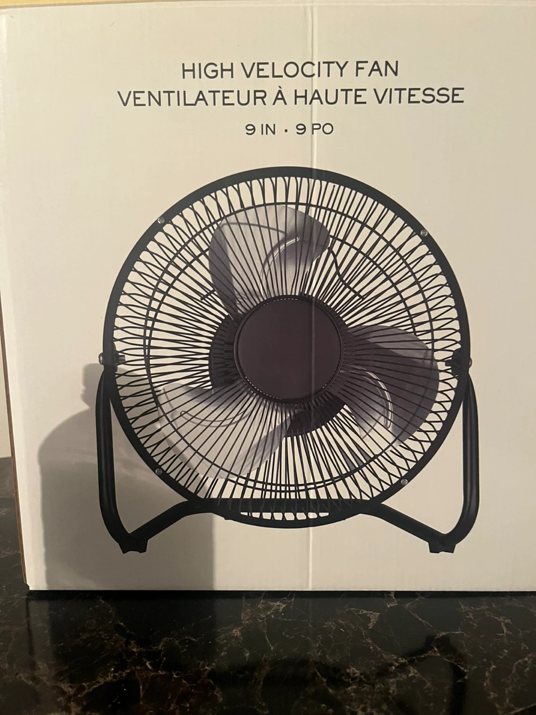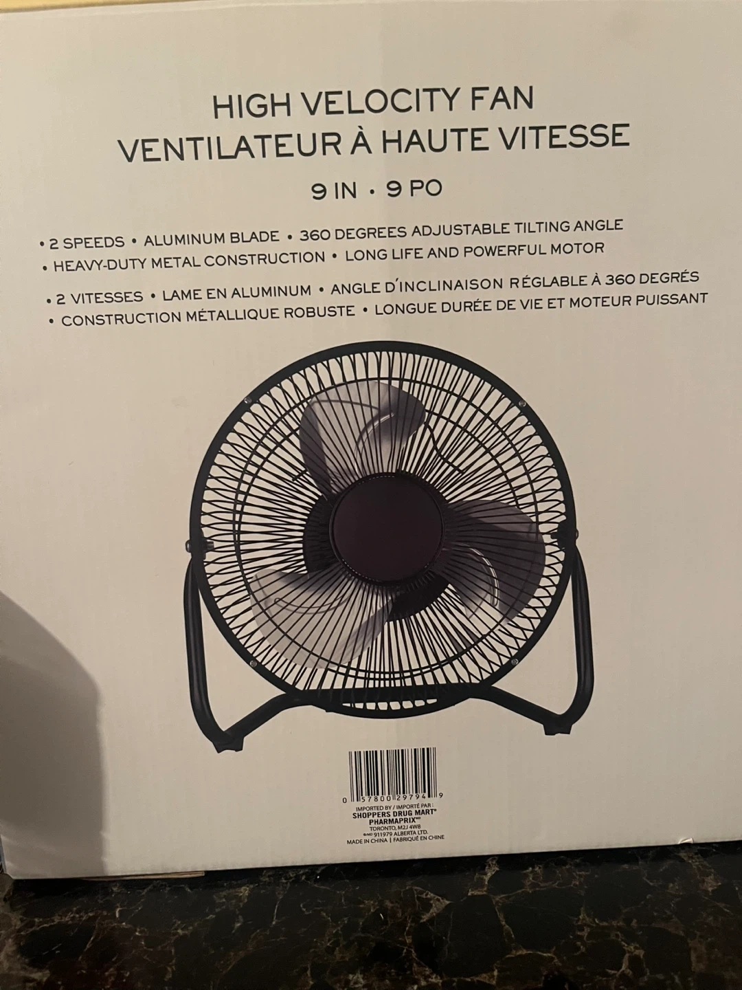 Selling a 9-inch high-velocity fan! It has two speeds, an aluminum blade, and a heavy-duty metal construction. It also has a 360-degree adjustable tilting angle and a long life and powerful motor