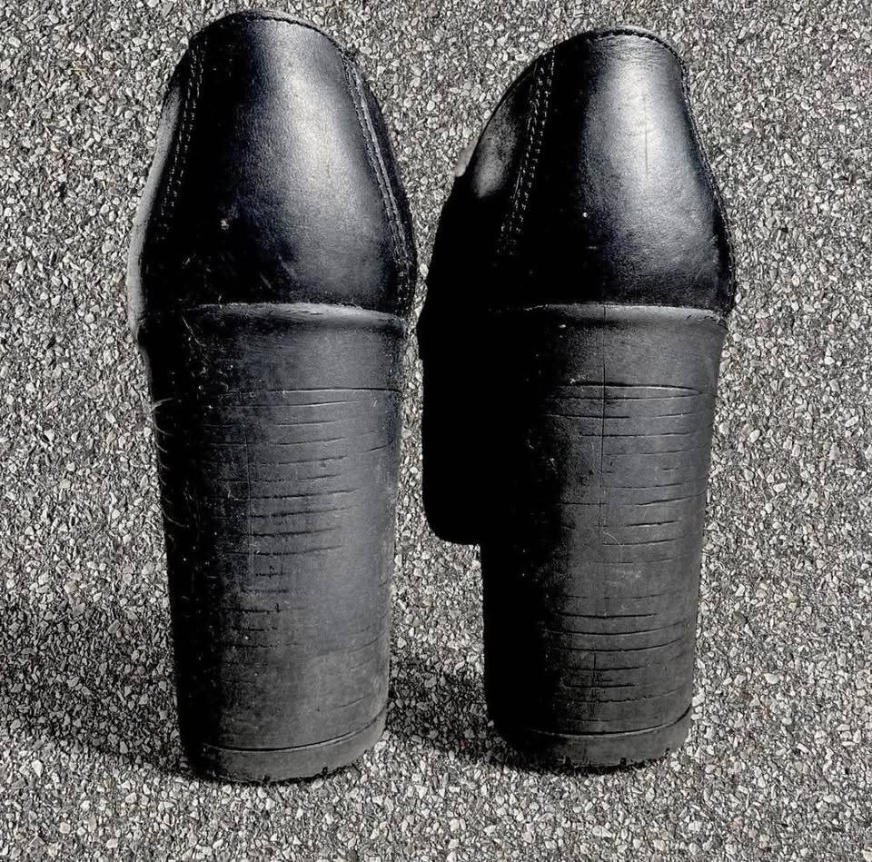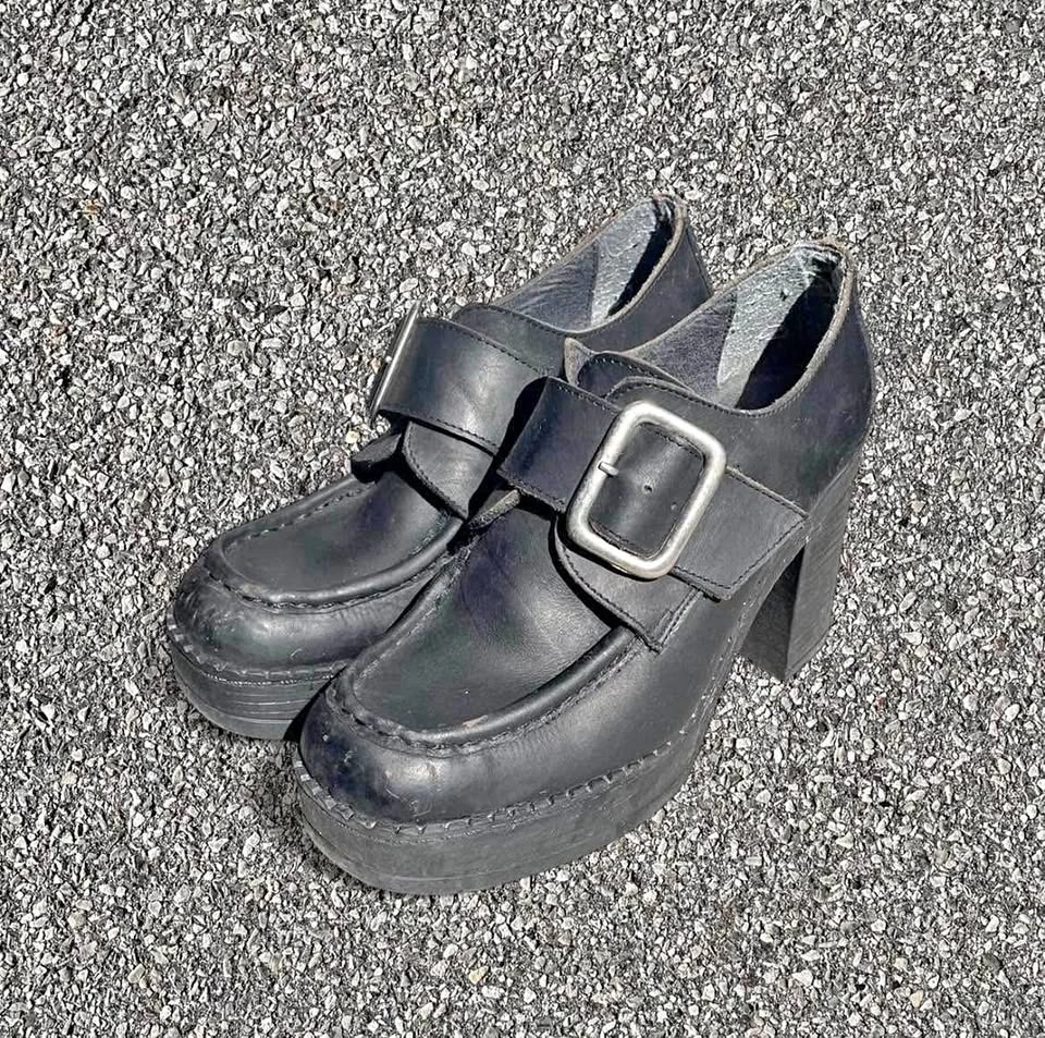 black leather, chunky platforms, Mary Jane, buckle detail, goth footwear, grunge style, vintage shoes, retro, platform heels, alternative fashion US 6