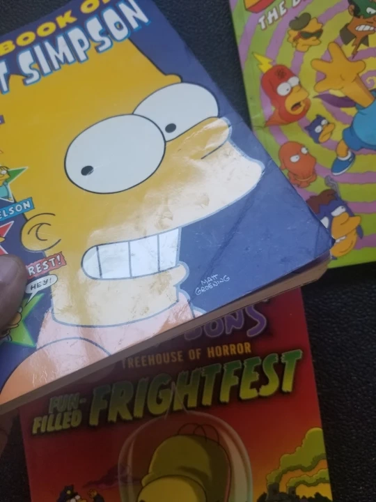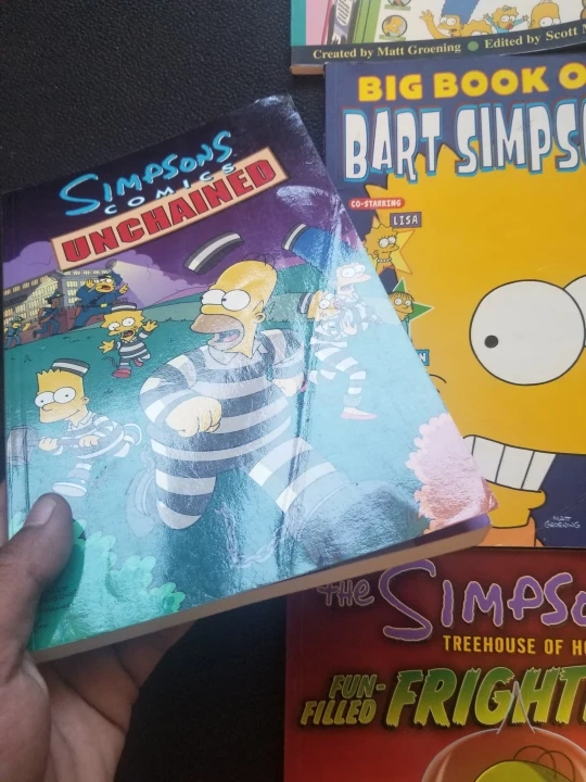 There are 5 simpsons books here, 4 are comic books 1 is SIMPSONS FOREVER book that has details about characters etc.