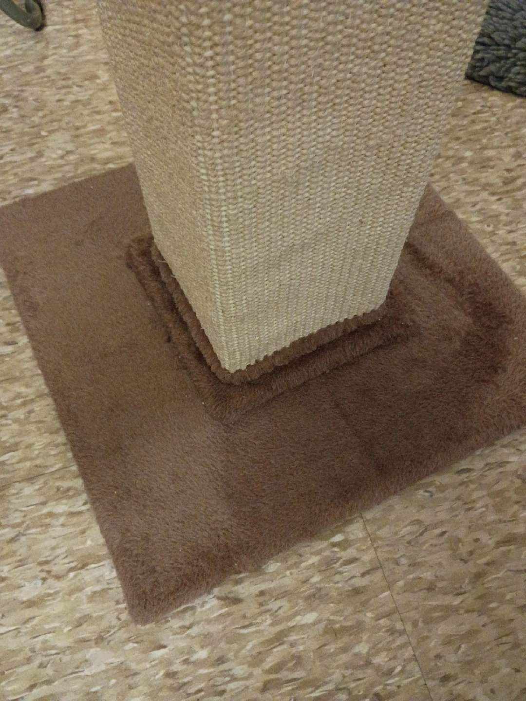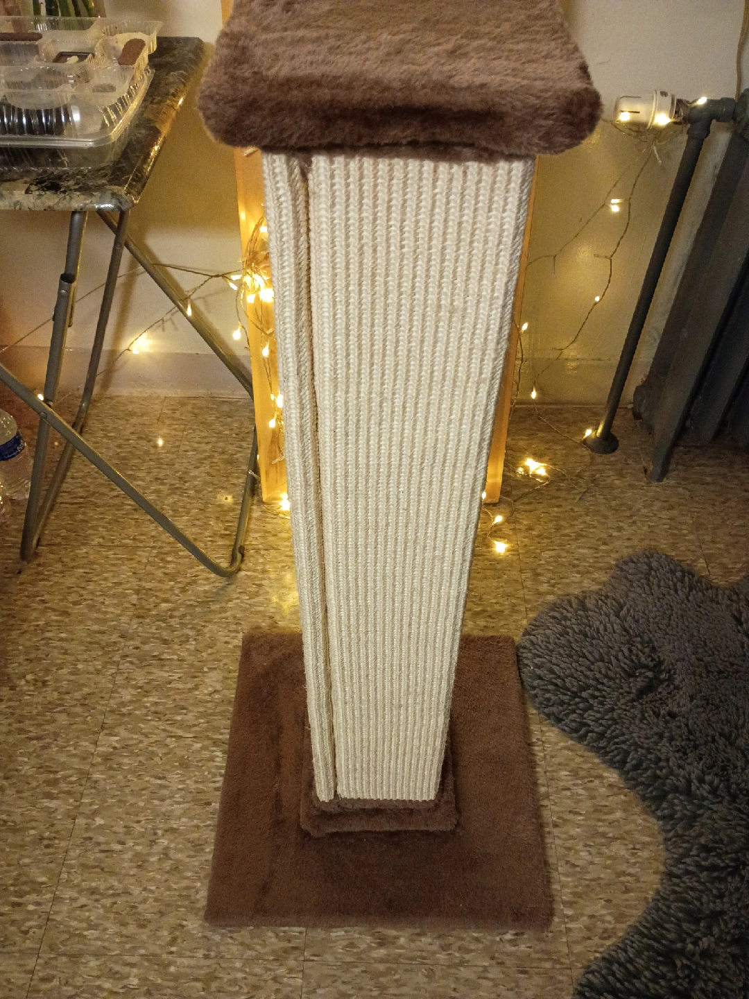 Selling a sturdy cat scratching post in good condition. It features a durable scratching surface and a cozy top perch for your furry friend to relax on. The base is also covered in a soft material. Perfect for keeping your cat entertained and saving your furniture!
