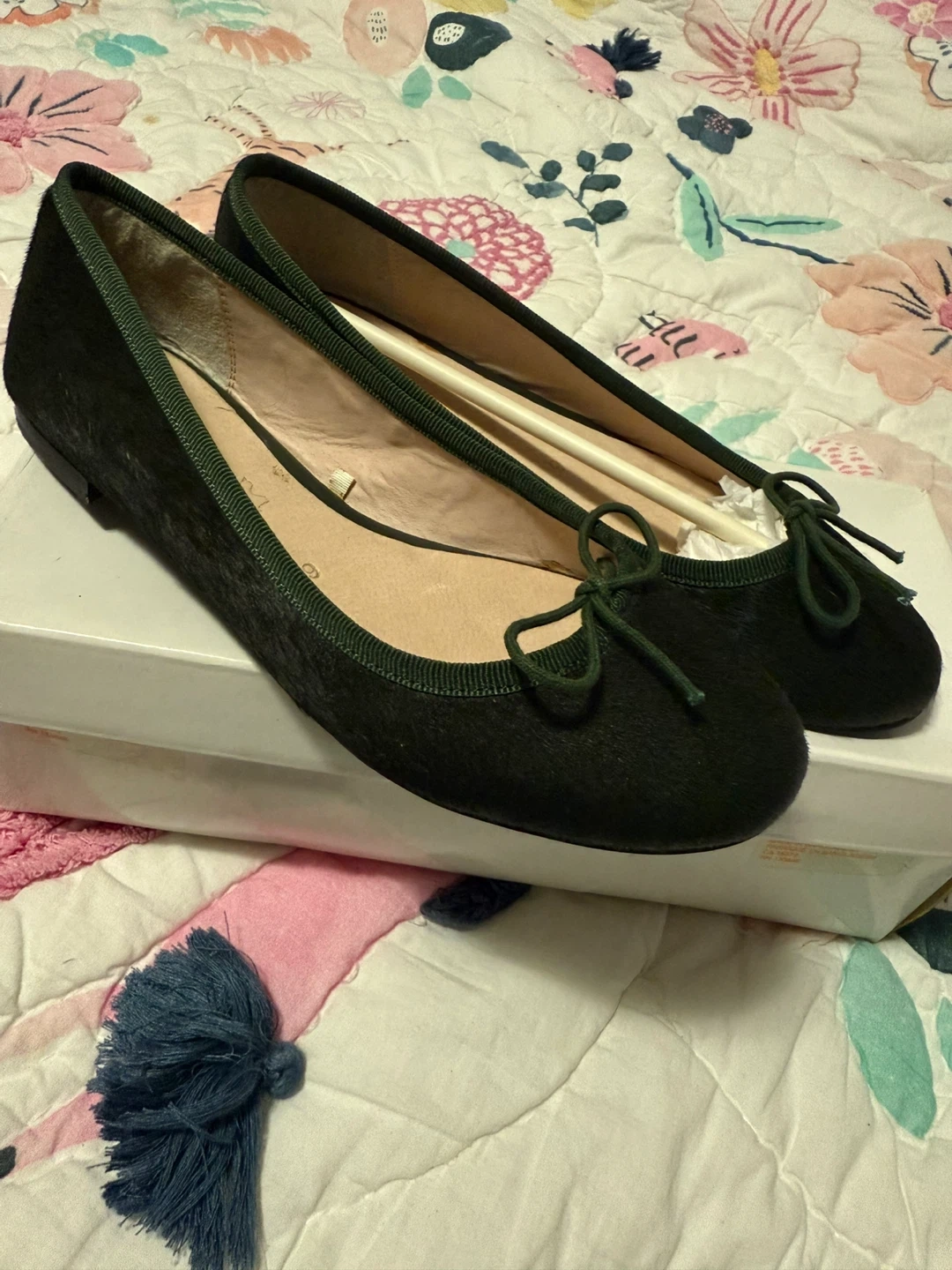 These J.Fresh ballet flats are in great condition and come with the original box! They are a size 6 and feature a unique green haircalf material. Perfect for adding a touch of sophistication to any outfit. Brand new, never used. Check out my other listings!