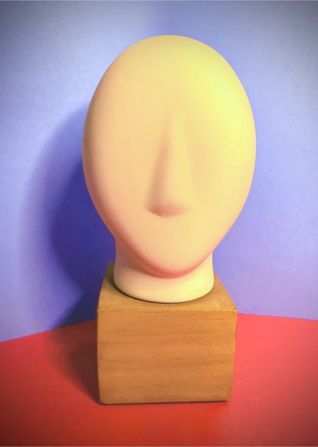 Selling a ceramic head sculpture on a ceramic block base. It is approximately 7 inches tall. It is a classy accent piece that can add a certain touch of design to any shelf or bookcase.