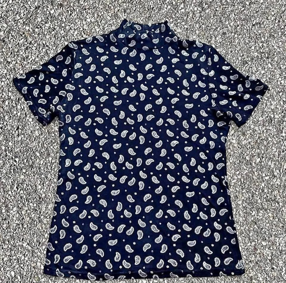 65vintage black polo shirt with a cute pattern #black #polo •fits size M, it’s stretchy (can fit L as well) black, patterned, polo, vintage, stretchy, casual, short sleeve, soft fabric, everyday, versatile