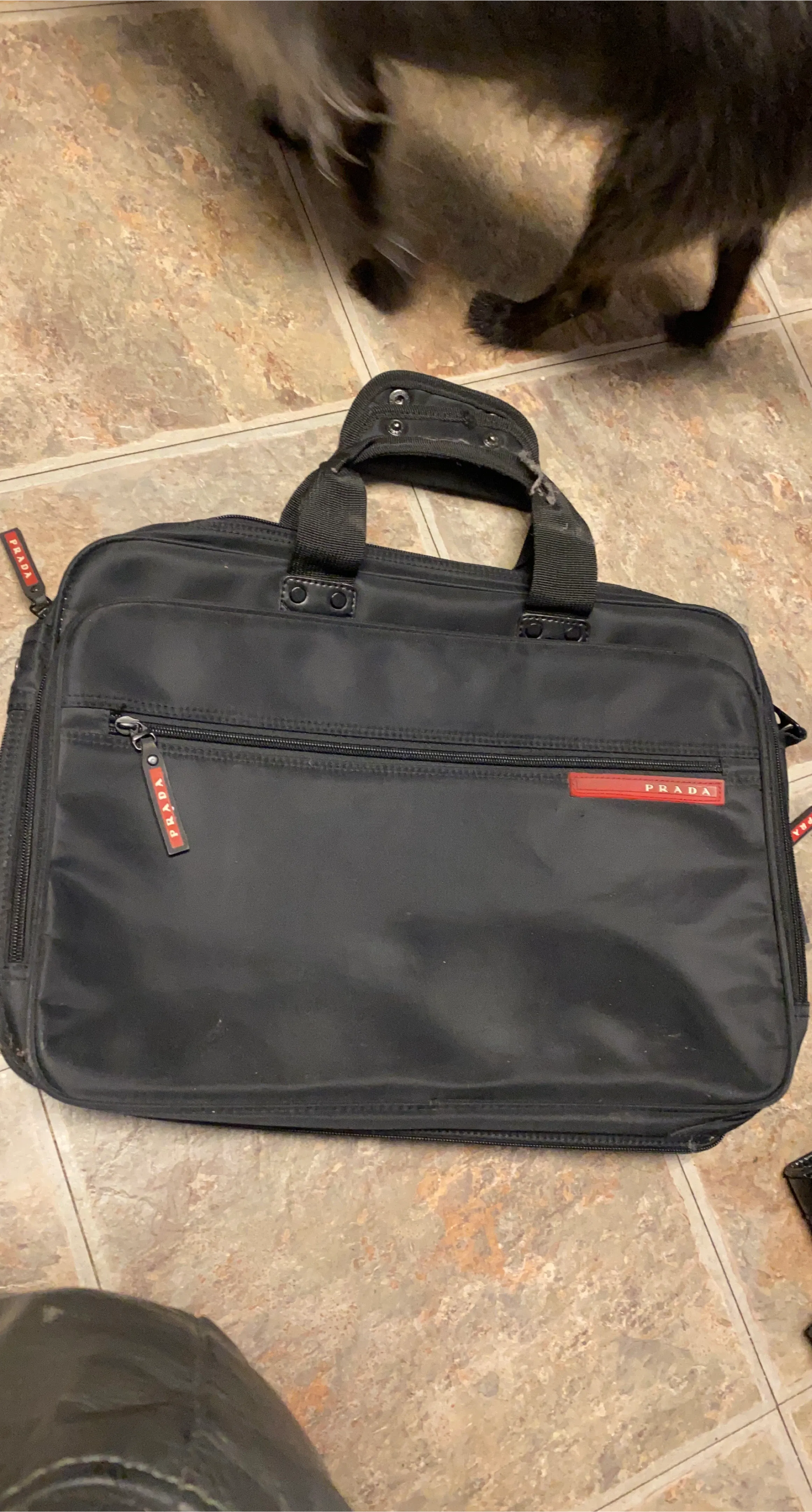 Selling a Prada briefcase in black. It has a few signs of wear, but still looks great. Perfect for work or travel!