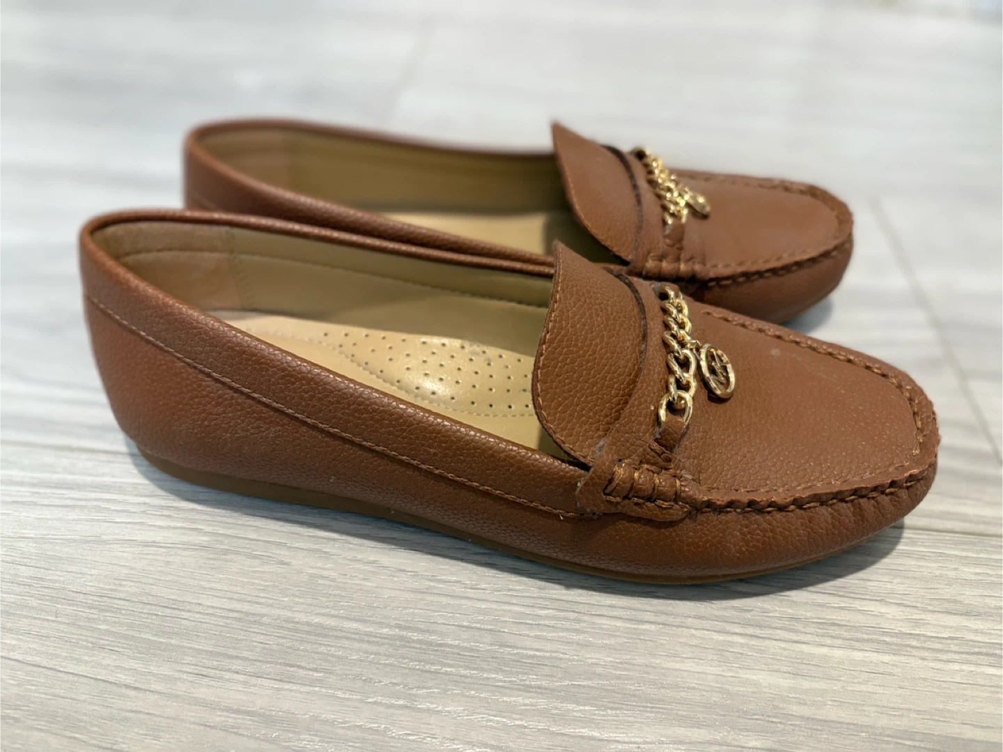 These brown leather loafers are a stylish addition to any wardrobe! They feature a classic loafer design with a decorative gold-tone chain detail. Perfect for adding a touch of sophistication to your everyday look