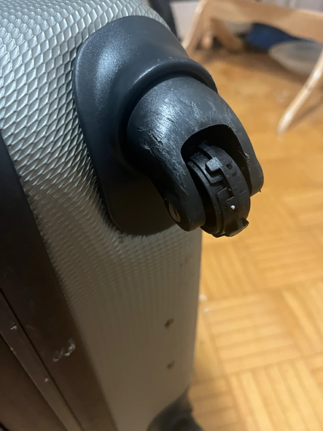 Selling a Delsey hardside suitcase. It's grey and has some signs of use, as you can see in the pictures. Perfect for your next trip or as storage.