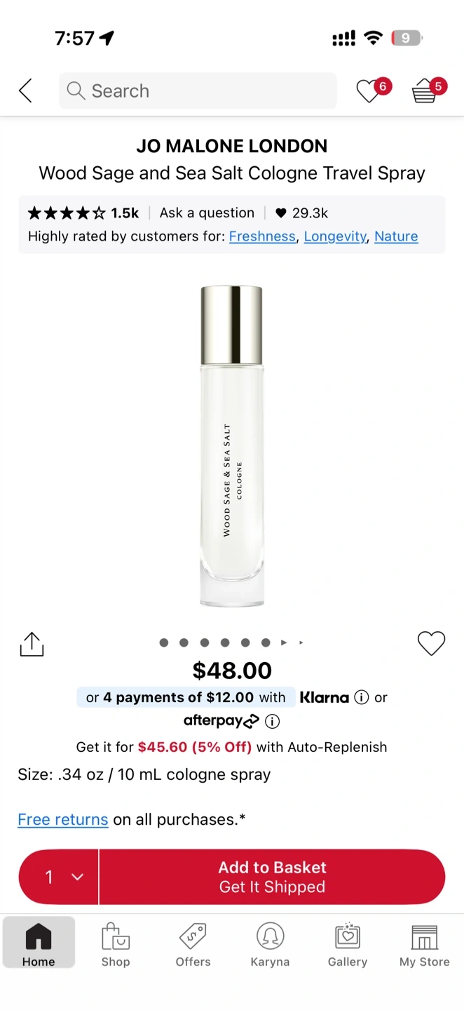 Travel size Joe Malone London cologne sea salt, size is 9 mL