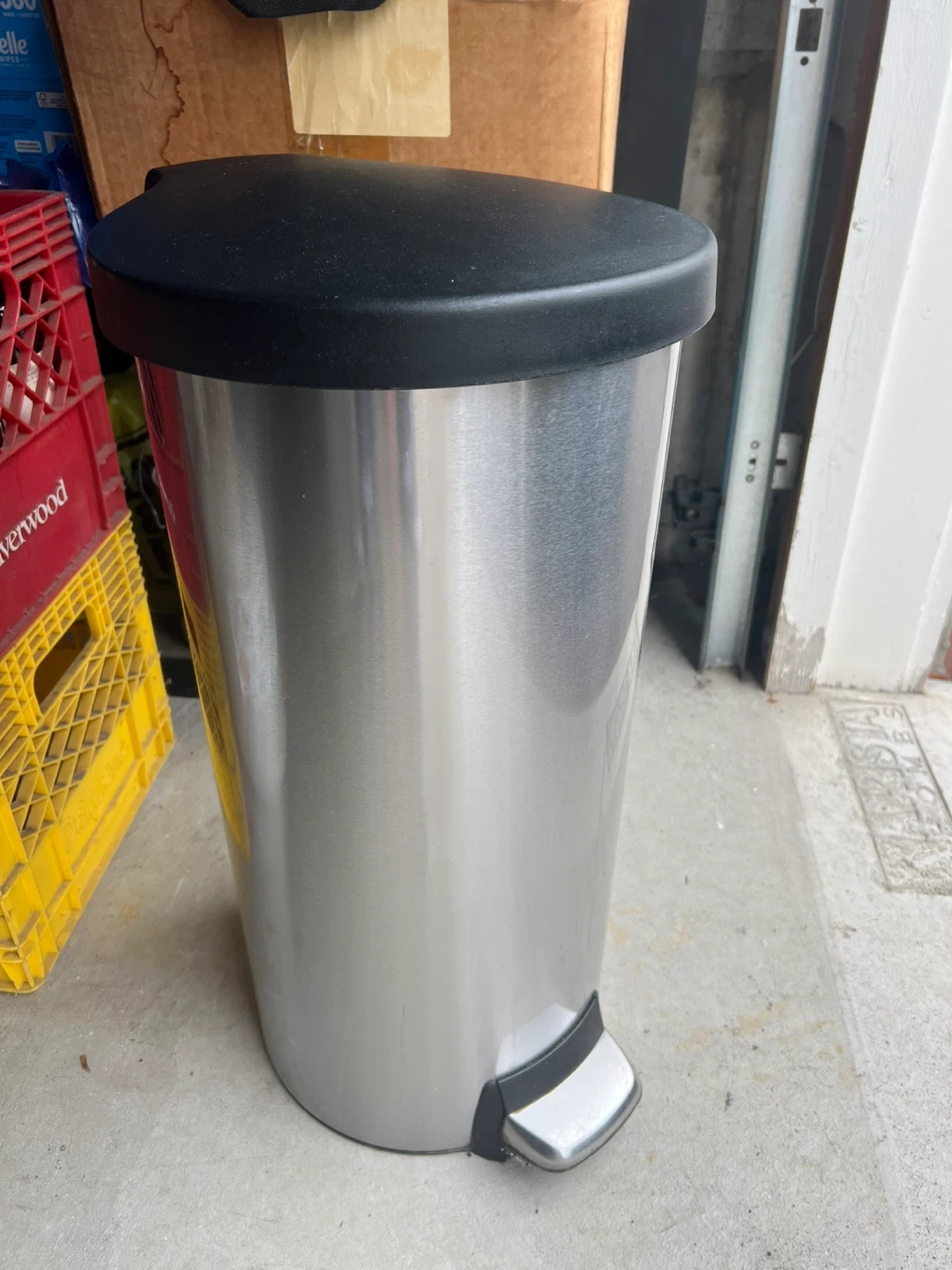 Selling a gently used stainless steel step-on trash can! It's in great shape and perfect for any room in the house. The foot pedal makes it easy to use, and the stainless steel finish is easy to clean and looks great
