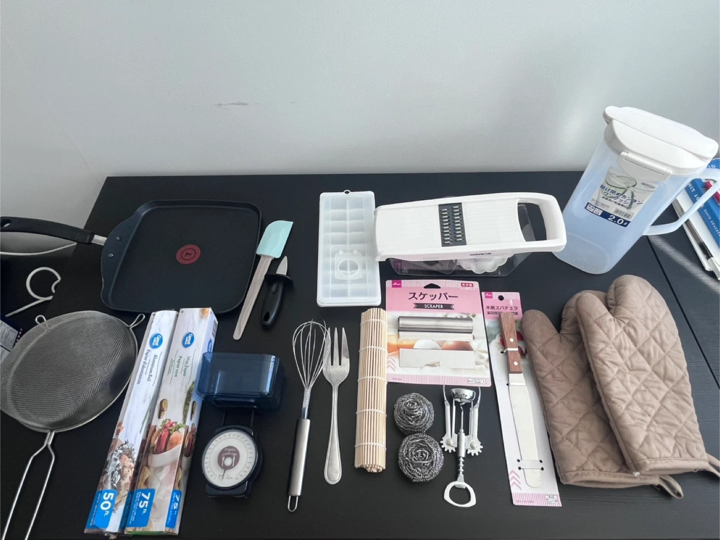 65Selling a bundle of kitchen utensils, including a griddle pan, aluminum foil, wax paper, grater, ice cube tray, water pitcher, oven mitts, and more! Great for stocking up your kitchen with essentials Some of them are 100% new
