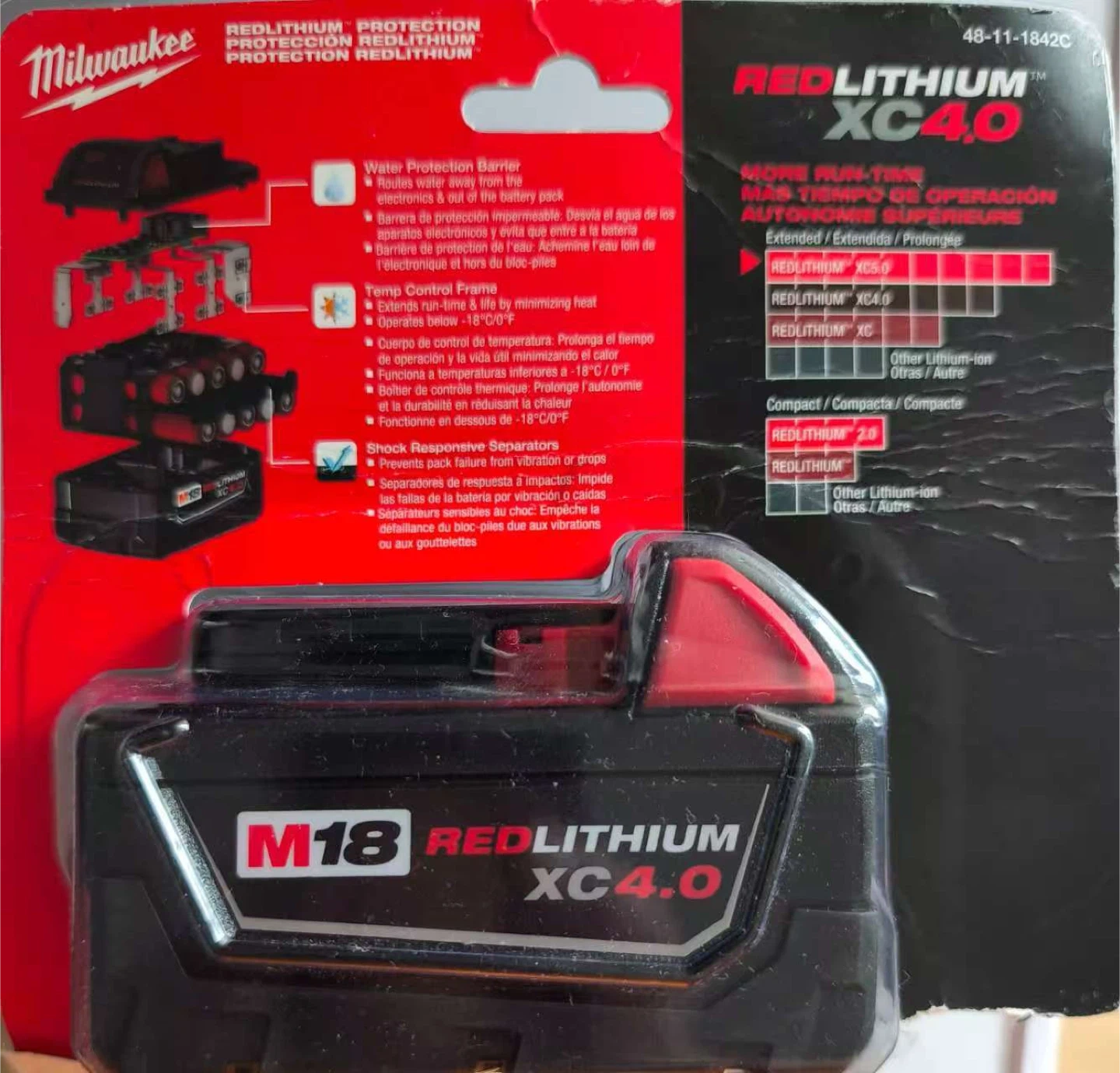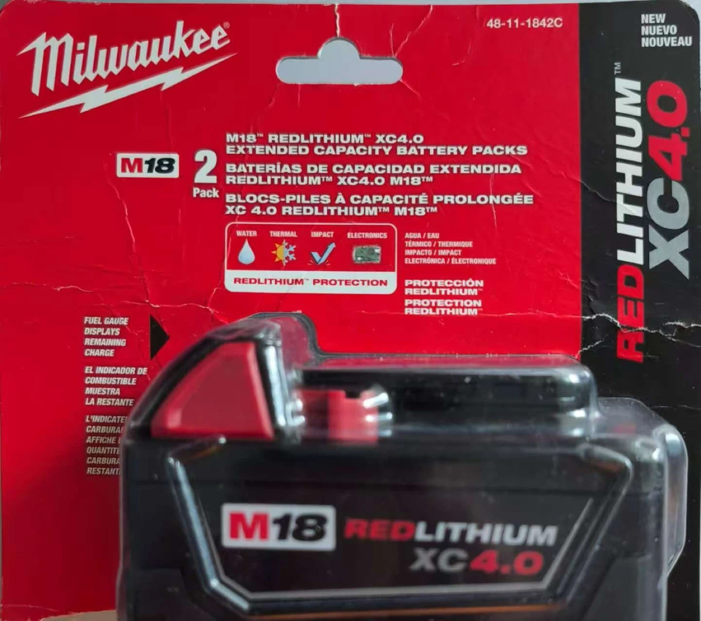 Selling a Milwaukee M18 REDLITHIUM XC4.0 battery. This is an extended capacity battery pack. It has REDLITHIUM protection for water, thermal, impact, and electronics. Originally bought for $198.00, now brand new unopened packaging for lower than half price, $90 cash only. Price is firmed, no negotiation.