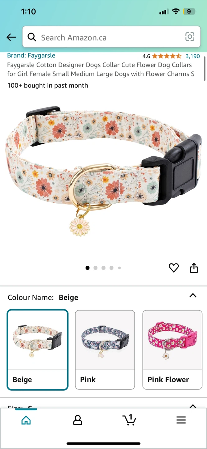 Looking to sell this cute dog collar from Faygarsle! It's a beige colour with a floral design and a little daisy charm. Perfect for your furry friend!
