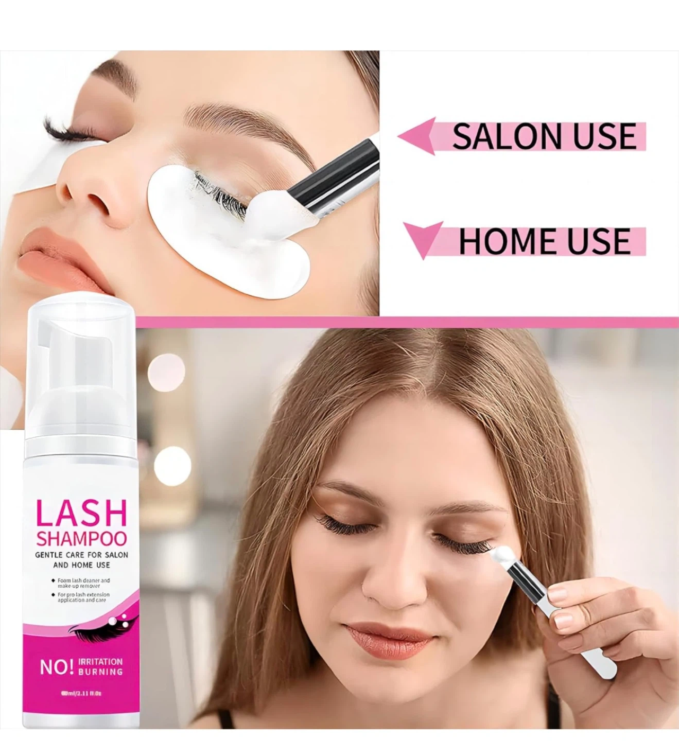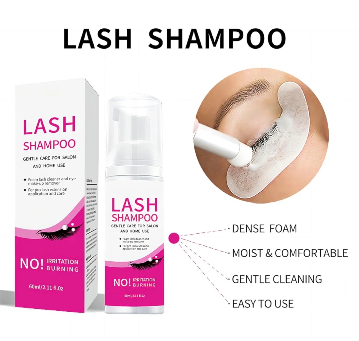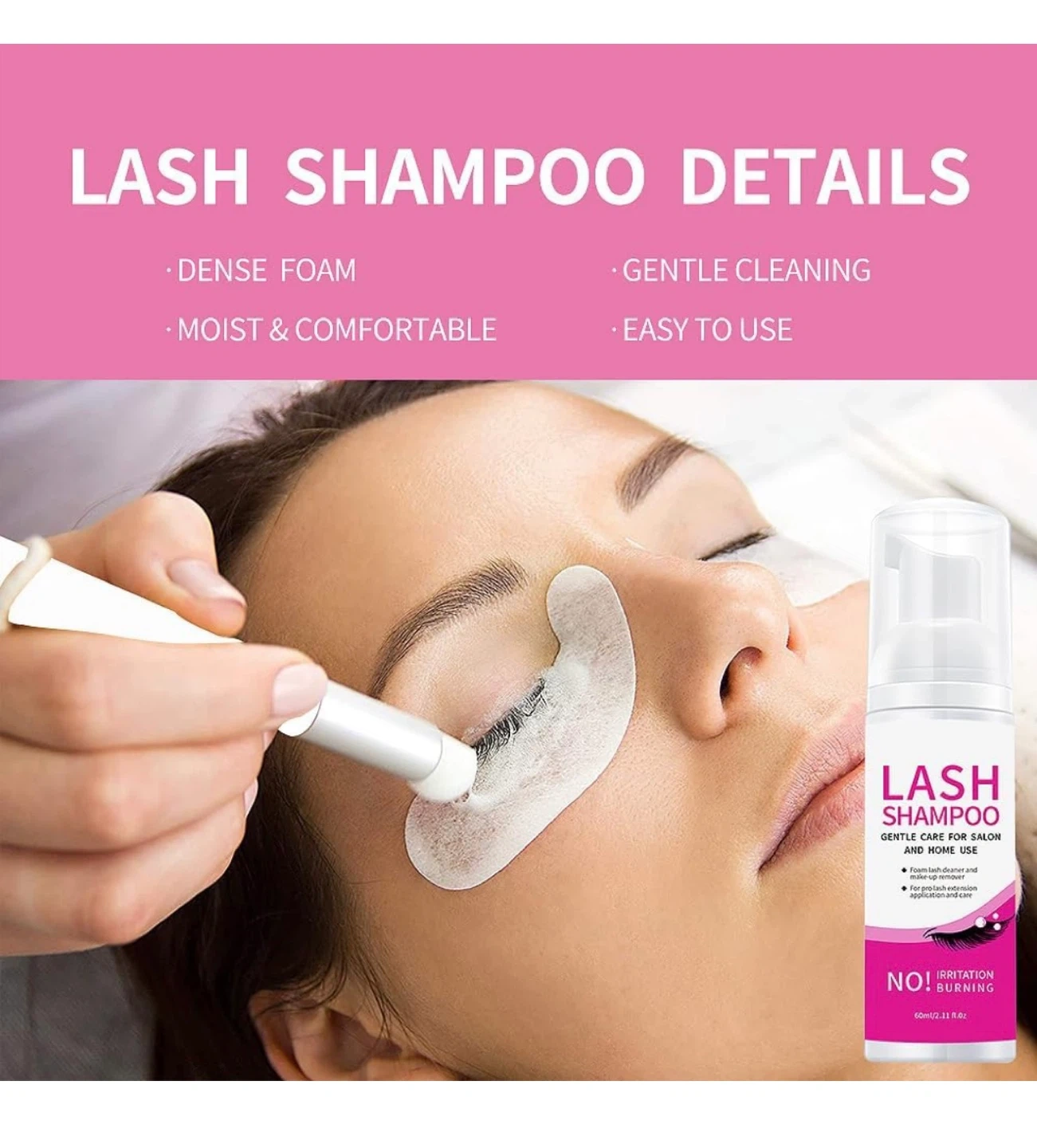 This lash shampoo is designed for gentle care, perfect for both salon and home use. It's a foam lash cleanser and eye makeup remover, ideal for pro lash extension application and care. The formula is designed to prevent irritation and burning, ensuring a comfortable experience. Each bottle contains 60ml/2.11 fl.oz