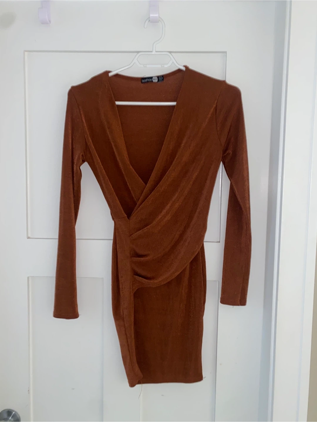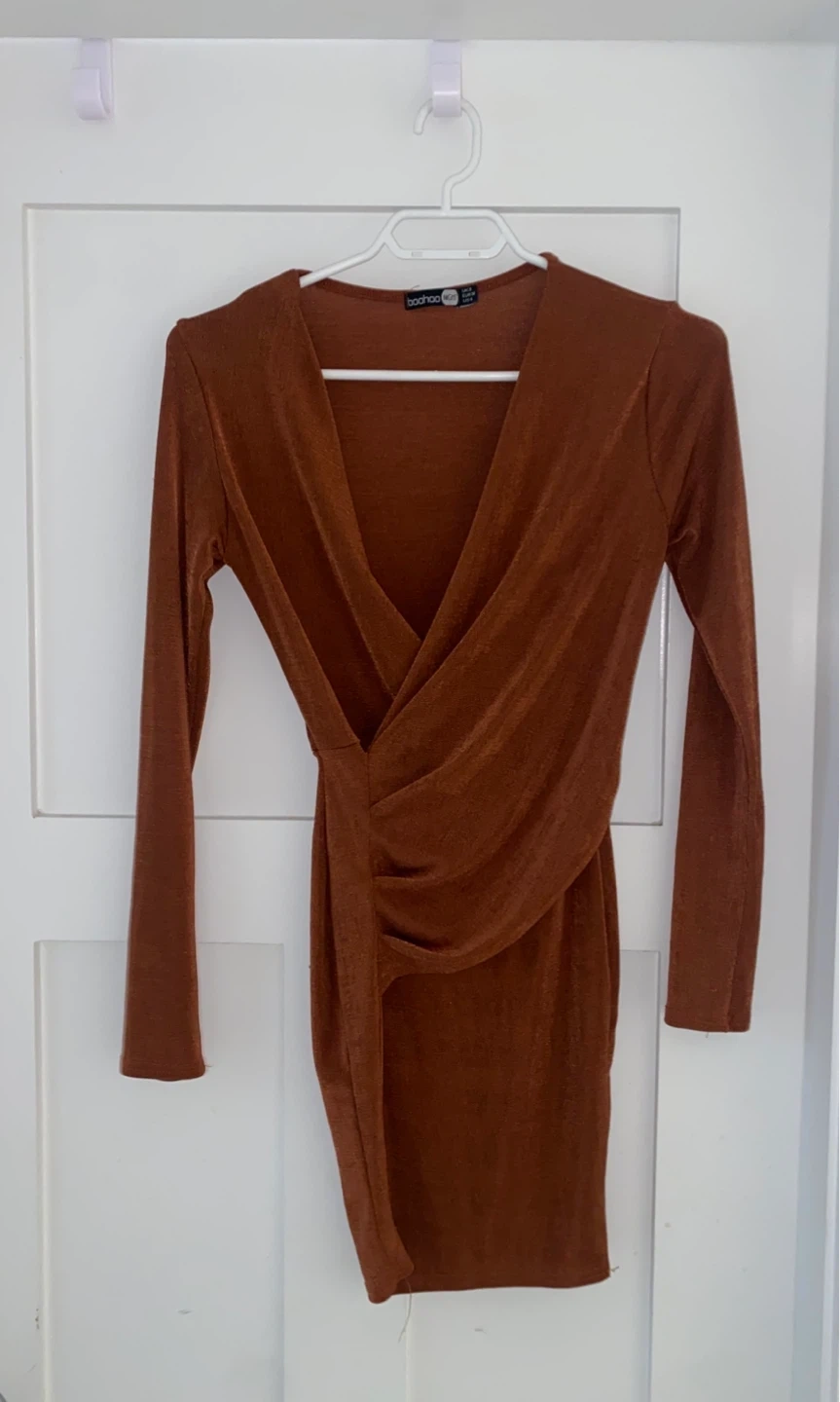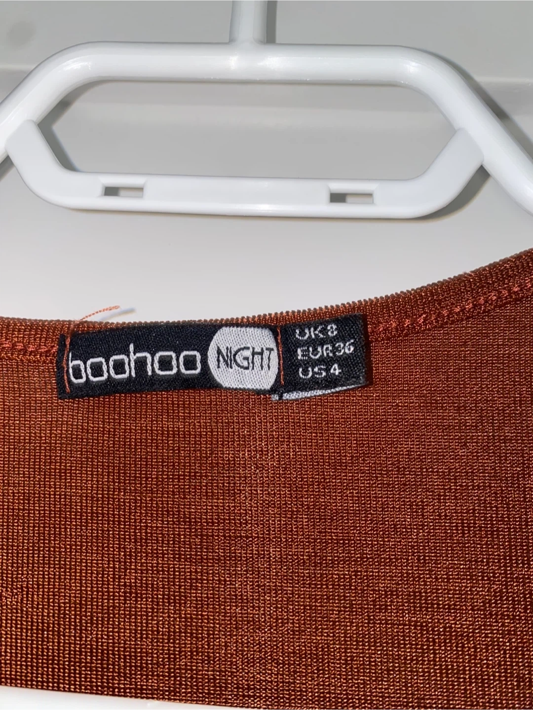 174Selling a Boohoo Night dress in a lovely brown colour! It's a size US 4. Perfect for a night out or a special occasion