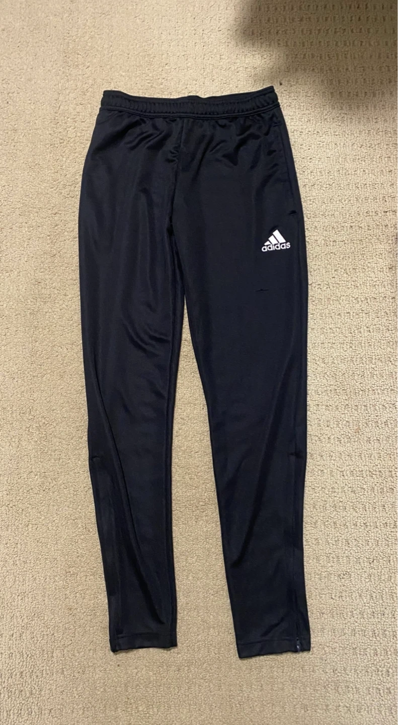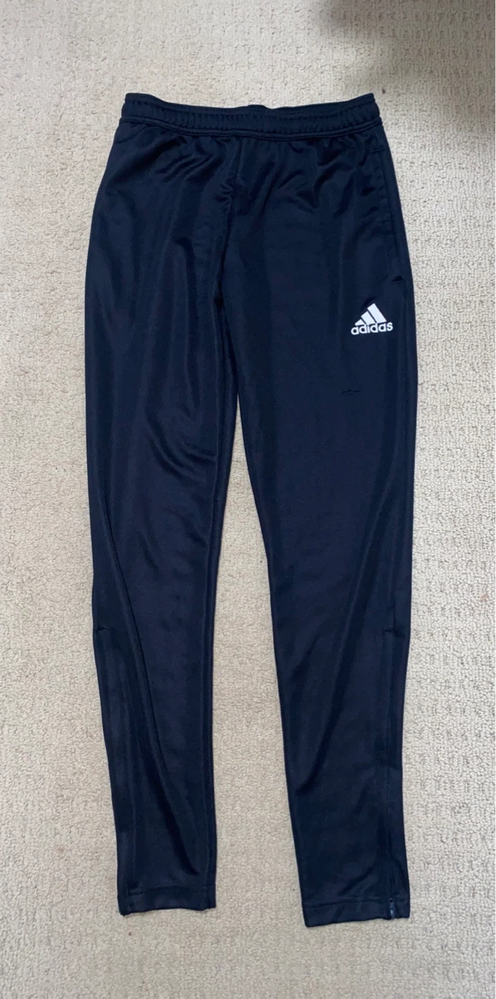174Selling a pair of Adidas track pants in a sleek navy colour! They're a size small and in great condition. Perfect for sports or just lounging around. They are made of a comfortable, lightweight material.