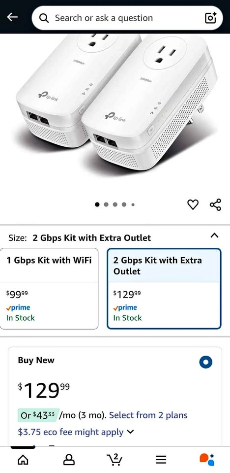83Boost your home network with this TP-Link Passthrough Powerline Network Extender Kit! Utilizes existing electrical wiring for a stable and fast connection. Perfect for streaming 4K HD videos or lag-free gaming. What's Included - TP-Link Passthrough Powerline Network Extender Kit (TL-PA9020P KIT) - 2x Powerline adapters with passthrough outlets Details - AV2000 2000 Mbps Powerline speed - 2 Ethernet ports per adapter for Gigabit connections - 2x2 MIMO Technology for better performance - Plug and Play for easy setup - Ideal for 4K HD streaming and lag-free gaming Condition - New, in original packaging Asking price: $70CAD