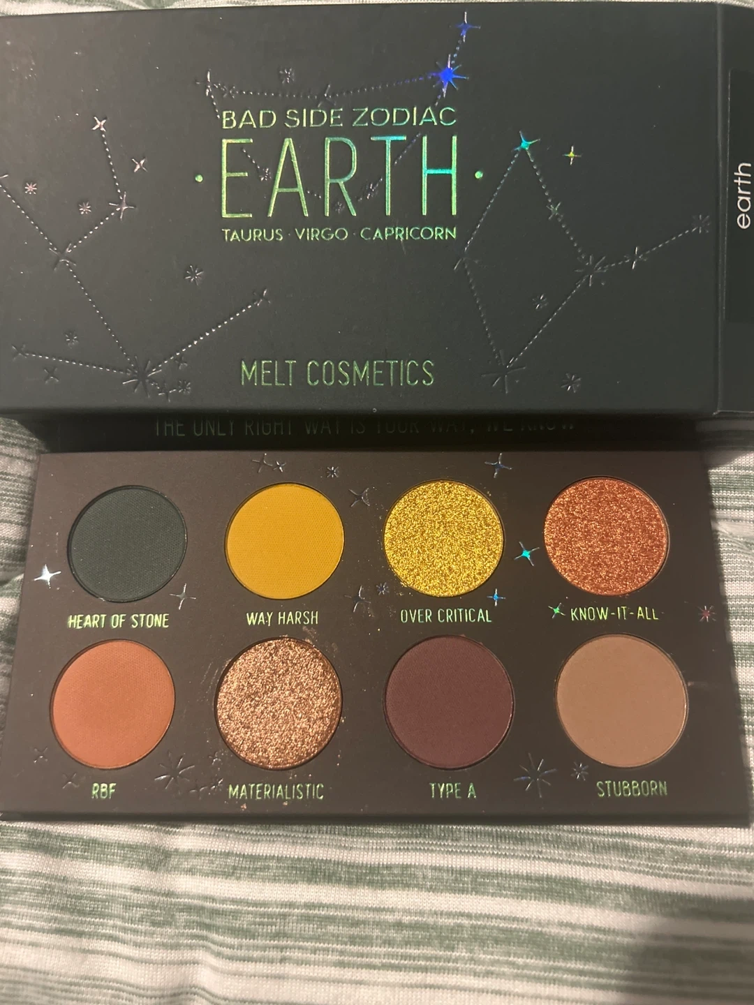 414Melt Cosmetics Earth eyeshadow palette! This palette features eight beautiful shades with names like Heart of Stone, Way Harsh, Over Critical, Know-It-All, RBF, Materialistic, Type A, and Stubborn. Perfect for creating a variety of looks! New Cash only at time of pick up from Mississauga SERIOUS INQUIRIES ONLY!