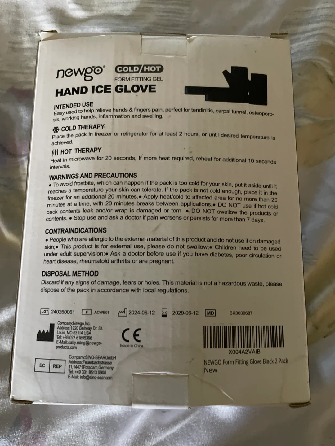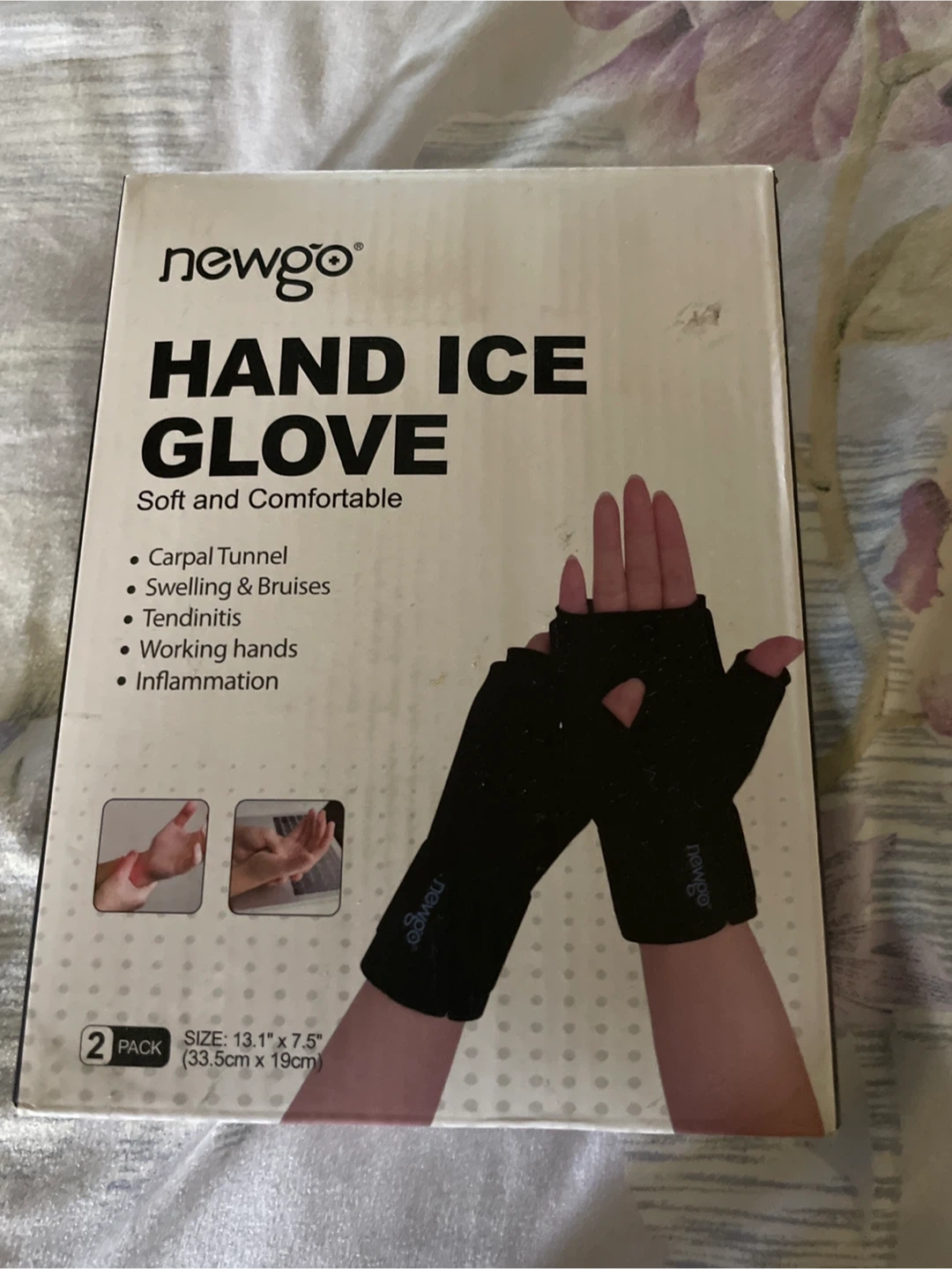 70Newgo Hand Ice Glove, soft and comfortable for carpal tunnel, swelling and bruises, tendinitis, working hands, and inflammation Size: 13.1" x 7.5" (33.3cm x 19cm) Expiration date: 2029 June 12