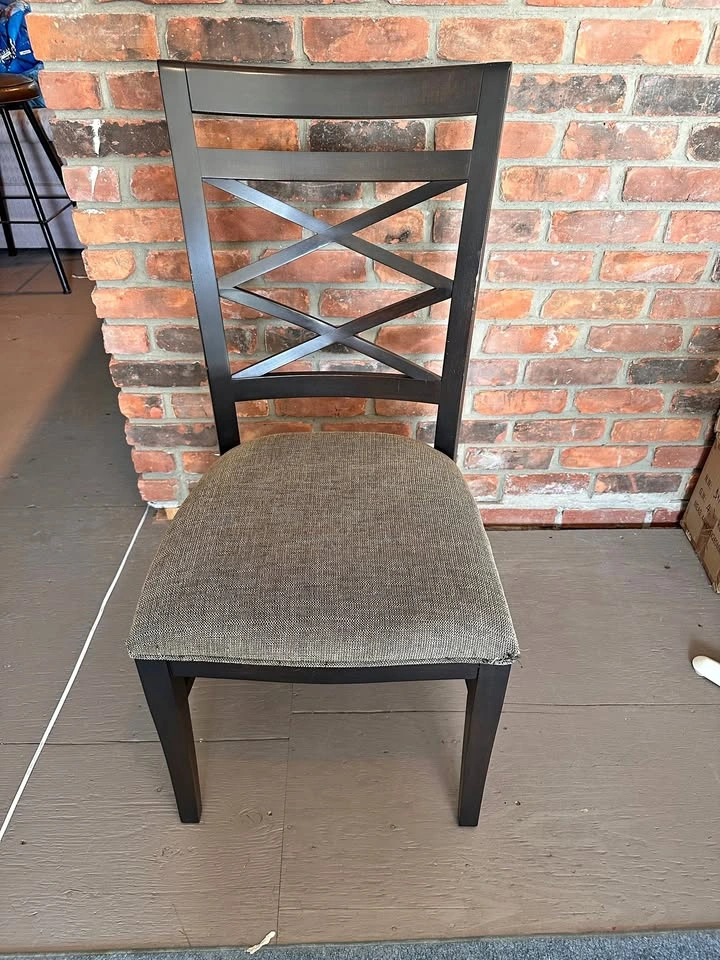 4 Dine-Art Furniture Canadian Made Solid Wood frame, fabric seats kitchen/dinning room chairs. Good condition, normal wear and tear. All chairs are solid. Selling all four together for one price. Also have 2 leather parsons chairs bought with them to sell if interested. If listing is up then they are available. Pick up only.