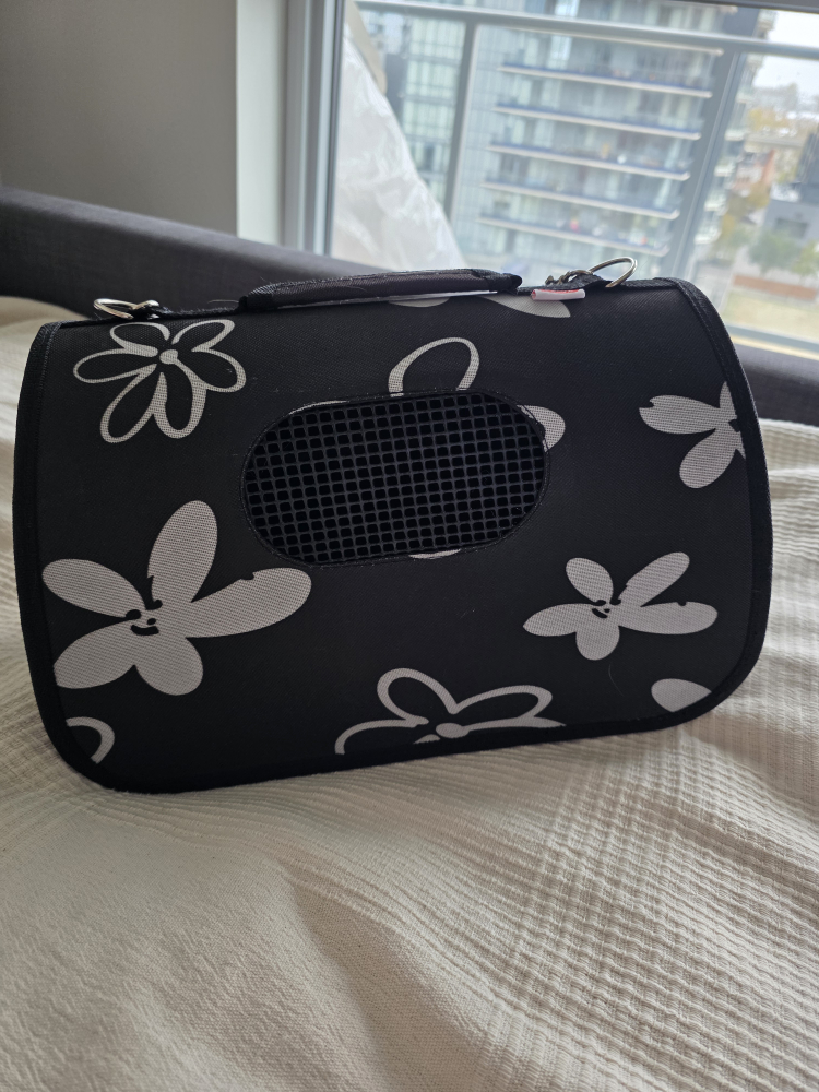 Selling a Zolux pet carrier in black with a cute floral design 🌸