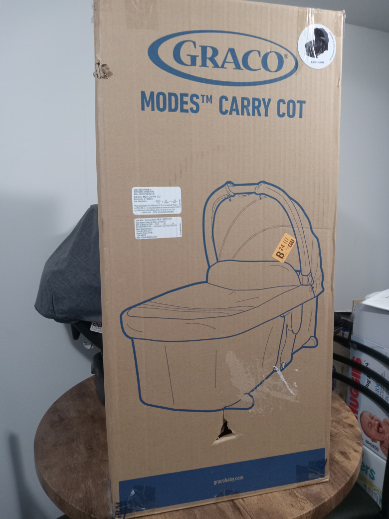 Selling a Graco Modes Carry Cot bassinet! It is in like-new condition and comes with the original box. Perfect for newborns and infants, this bassinet provides a safe and comfortable sleeping space. The carry cot is easy to detach and transport, making it convenient for travel or moving around the house. It's a great addition to any Graco Modes travel system!