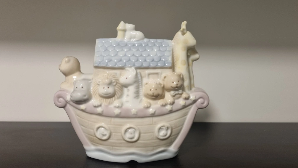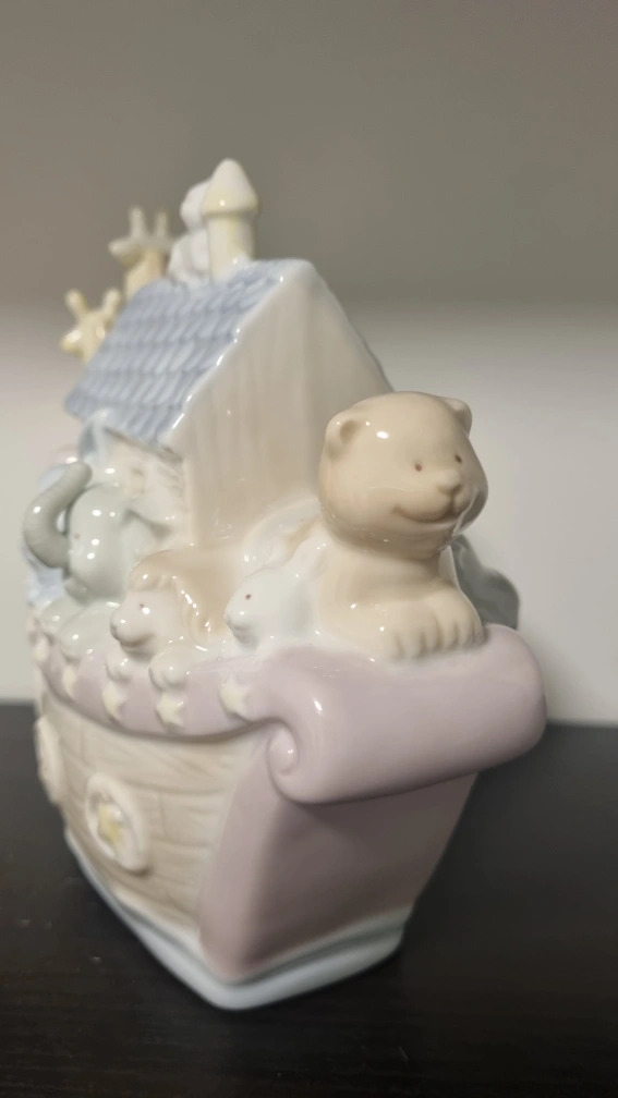 109A cute Noah's Ark figurine featuring various animals. It would be a lovely addition to a nursery or child's room. The figurine is in great condition and ready for a new home
