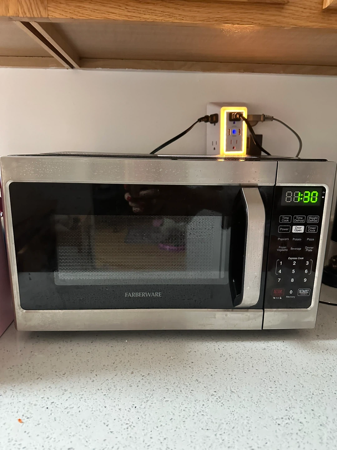Selling a Farberware compact microwave oven. It has settings for popcorn, potato, pizza, frozen vegetables, and beverages. There's also an express cook feature! 16.5”l x 9.5”h