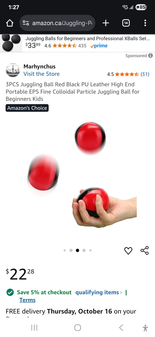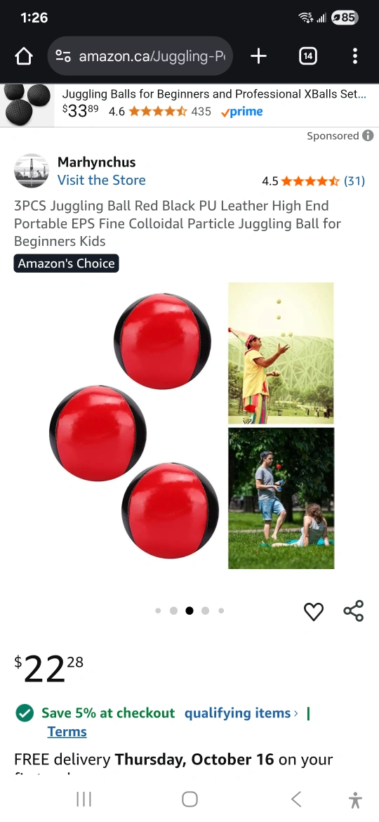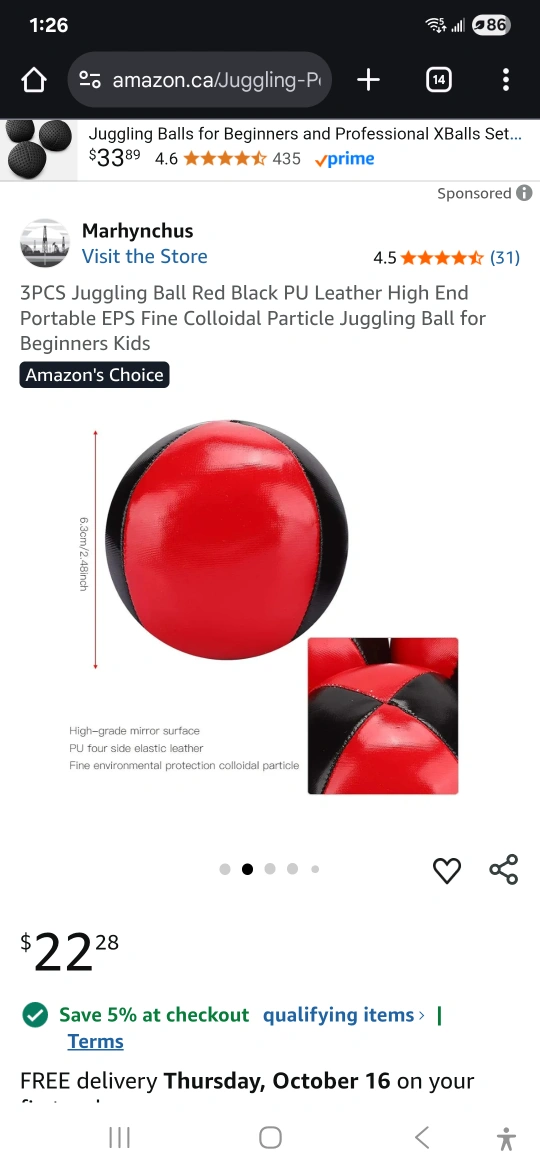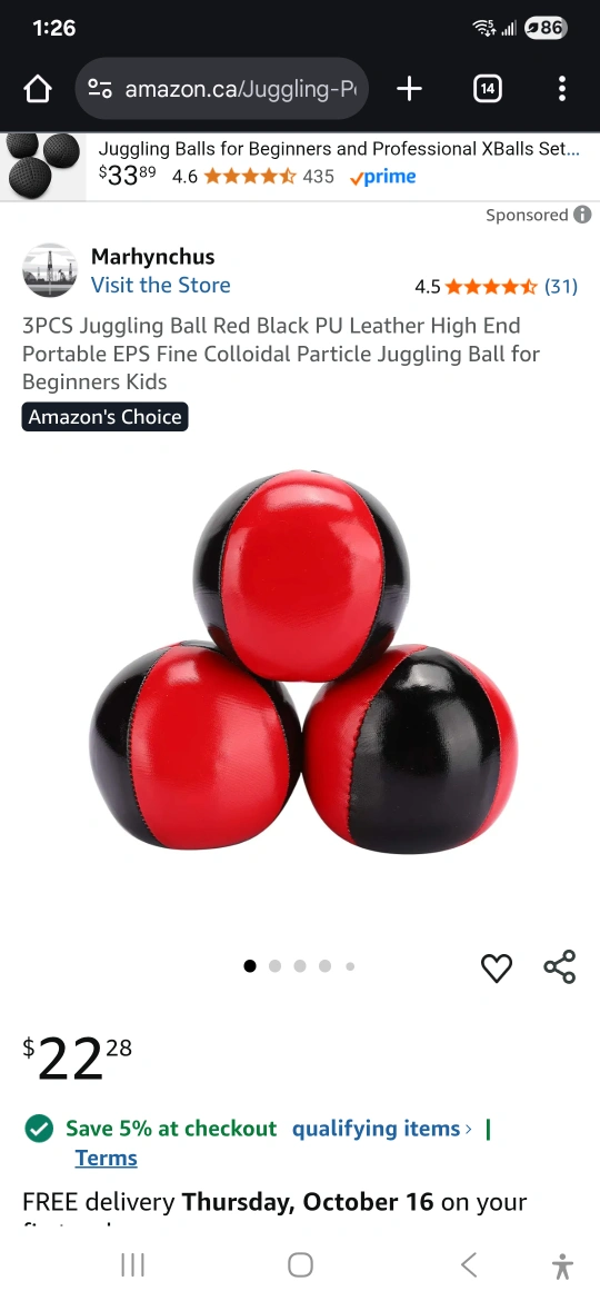 197Selling a set of 3 juggling balls in red and black! They're made of PU leather and are filled with fine colloidal particles. Perfect for beginners and kids who want to learn how to juggle
