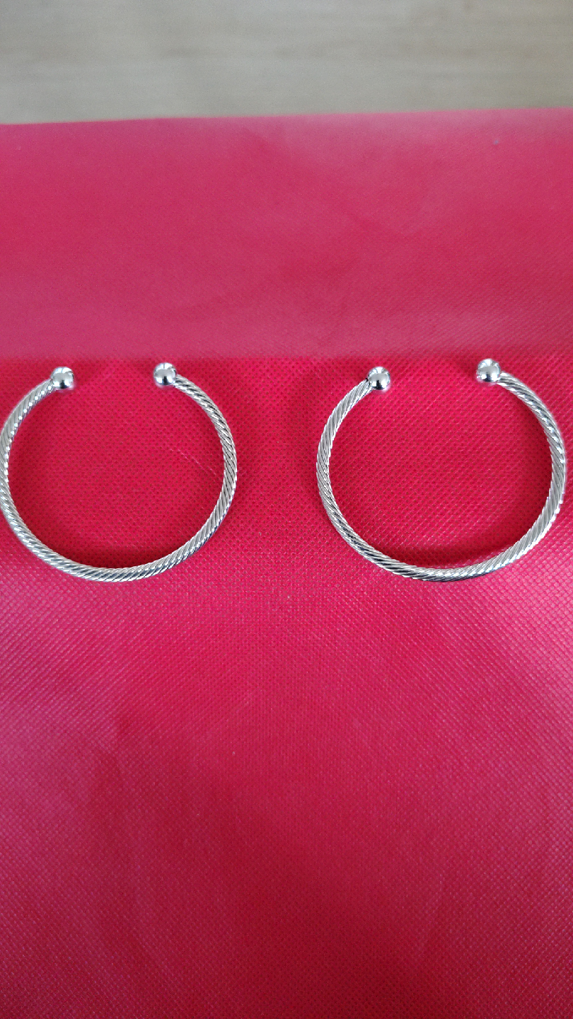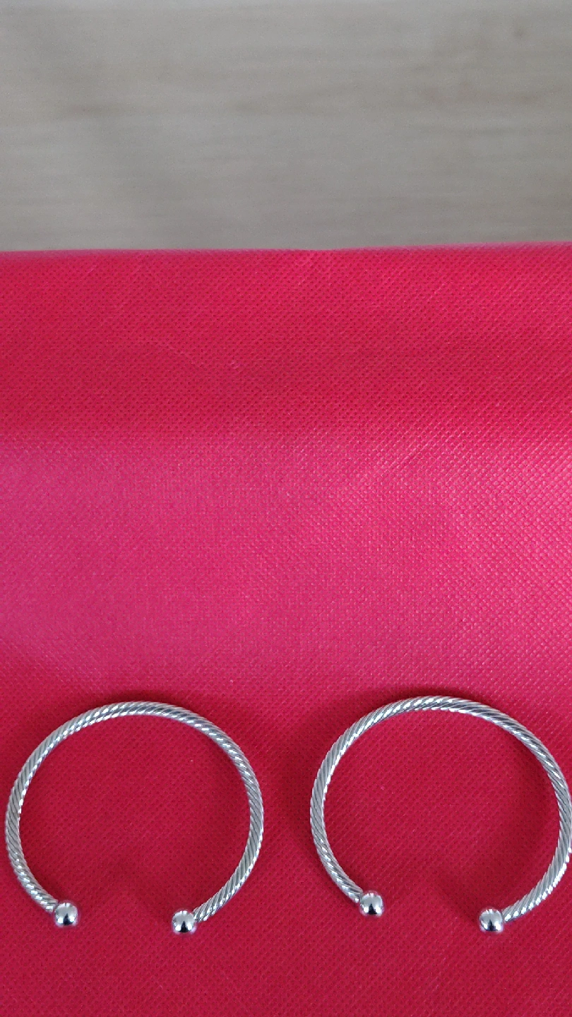 Selling a set of two silver bangle bracelets. Perfect for stacking or wearing individually. A simple and elegant accessory.