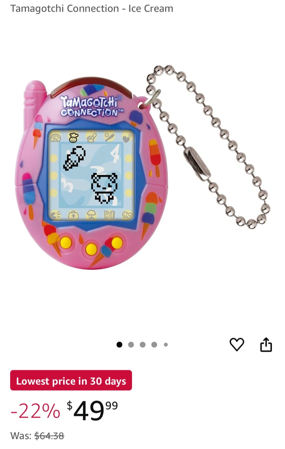 Selling a Tamagotchi Connection in the ice cream design! It's in perfect condition, but no box. I bought off Amazon for $50+tax in June.