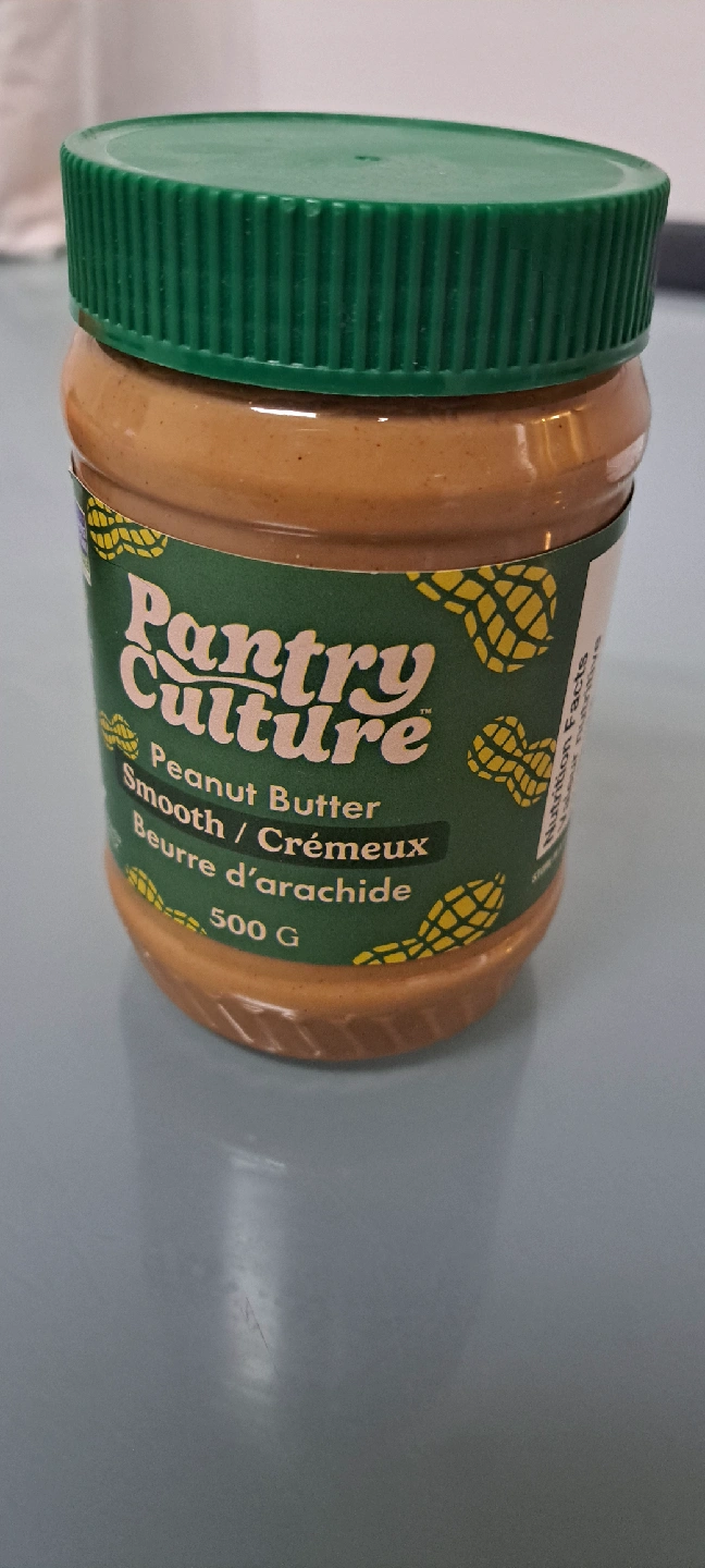 Selling two jars of peanut butter! One is a 375g jar of Peanut Butter Smooth. The other is a 500g jar of Pantry Culture Peanut Butter Smooth
