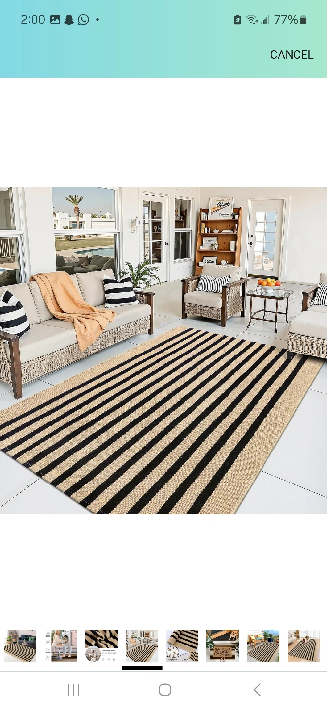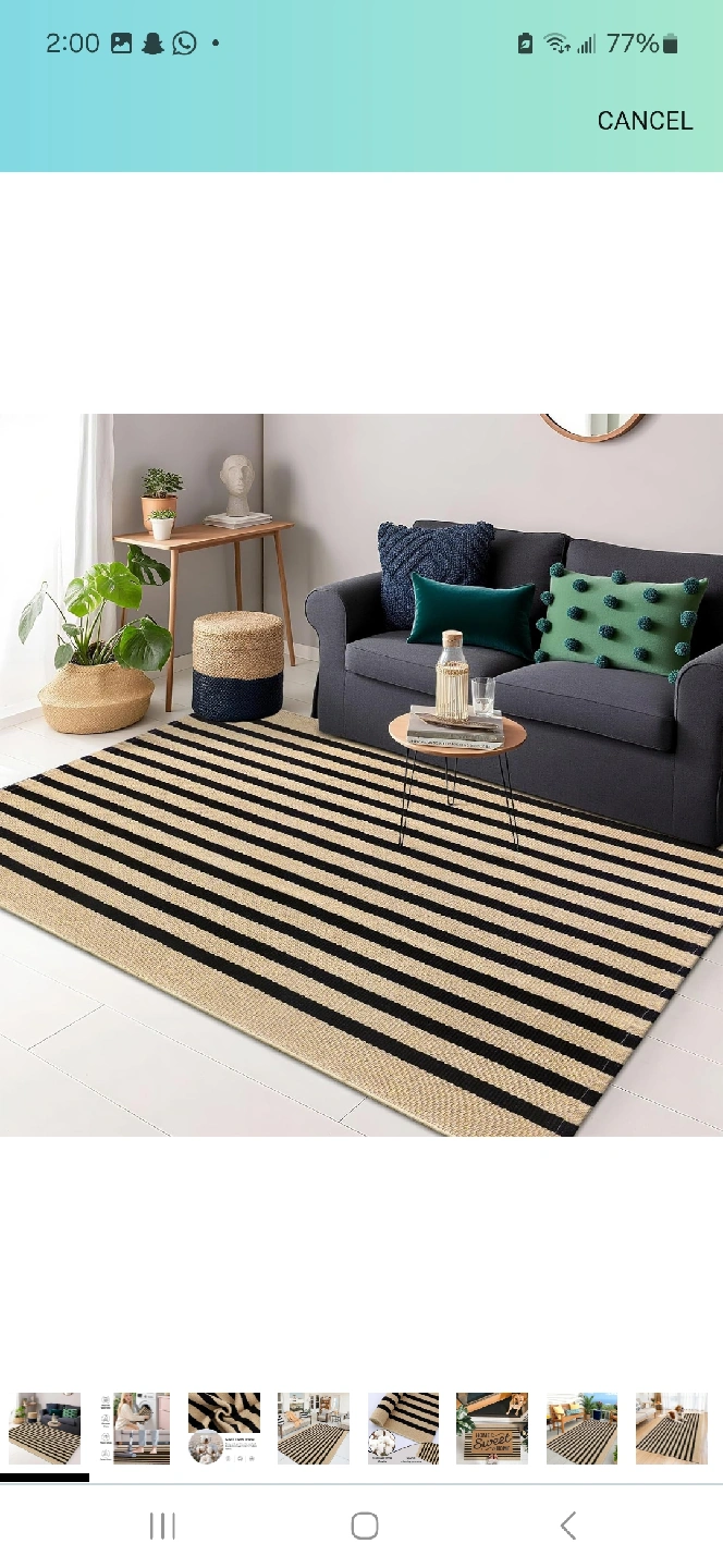 Add a touch of warmth and style to your space with this cozy cotton rug! It features a classic striped design in black and beige. It's machine washable, vacuum cleanable, wipe cleanable, and even robot cleanable for easy maintenance. Made with superior quality cotton and a special crimping process, this rug is both gentle and inviting. 3 feet x 4 feet 10 inches. Pu from Cambridge from a sf/pf home. $30.