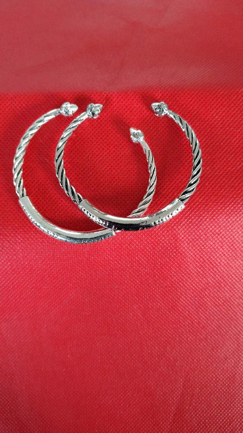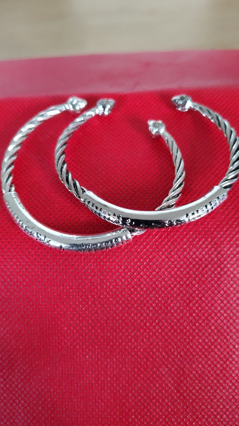 Selling a set of two silver-tone bangle bracelets. They have a unique twisted rope design and are in great condition. Perfect for adding a touch of elegance to any outfit!