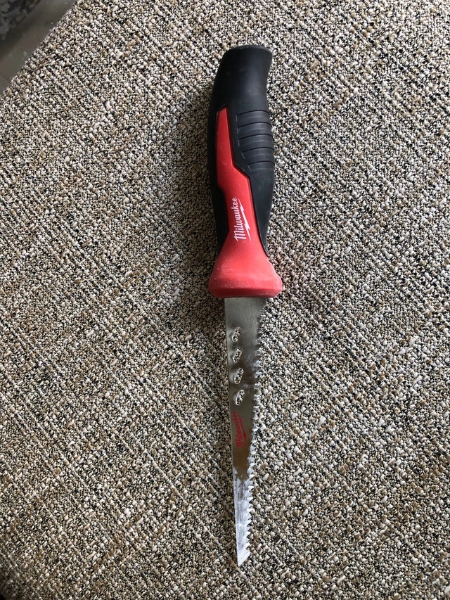 This Milwaukee knife is a durable and versatile tool, perfect for a range of cutting and sawing tasks with its sturdy blade and ergonomic handle. This item has been used and has some signs of wear. * Blade Material: Metal * Handle: Durable, ergonomic handle * Brand: Milwaukee This trusty blade is ready for its next adventure. If the ad is up, the knife is still available, ready to join your toolkit and tackle whatever challenges lie ahead. Based on comparable listings, I've priced it to sell for a fair value.