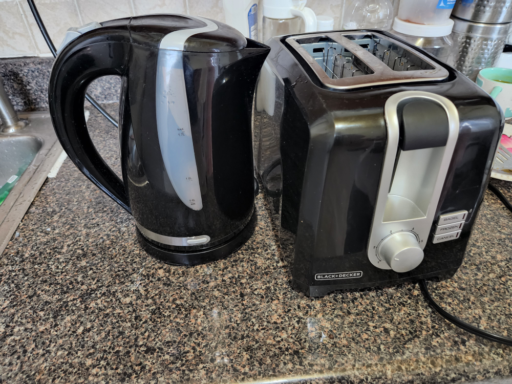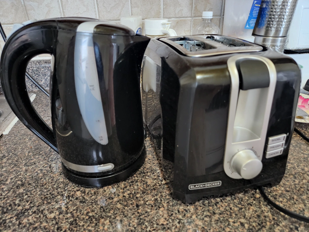 Selling a Black & Decker kettle and toaster set. Both are in good working condition and ready for a new home! They're perfect for making a quick breakfast or tea time snack