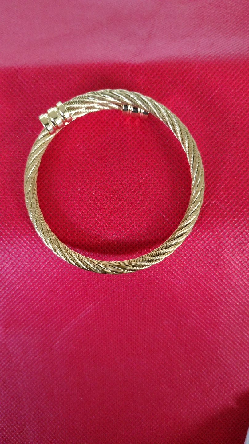 Here's a gold-tone cable bangle bracelet that's in great condition! It's a stylish accessory that would look great with any outfit